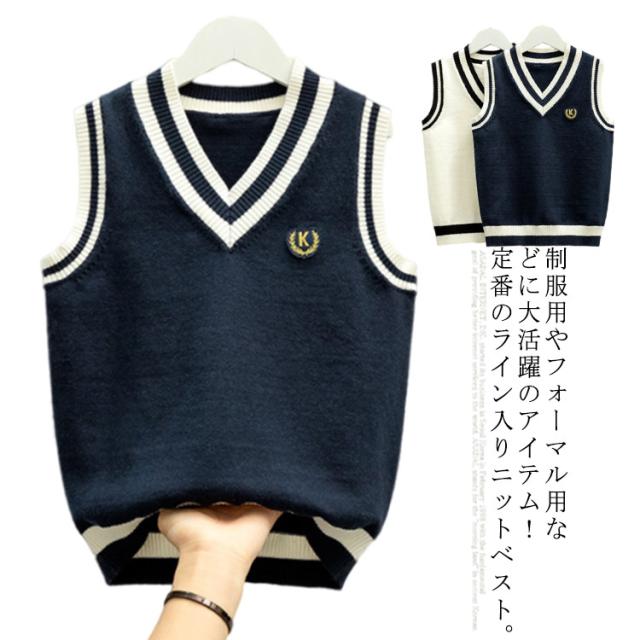 ニットベスト キッズ スクールベスト 制服 Vネック 男の子 スクールセーター 通学 ノースリーブ 学生服 高校生 中学生 トップス ジュニア 発表会 卒業式 入学式