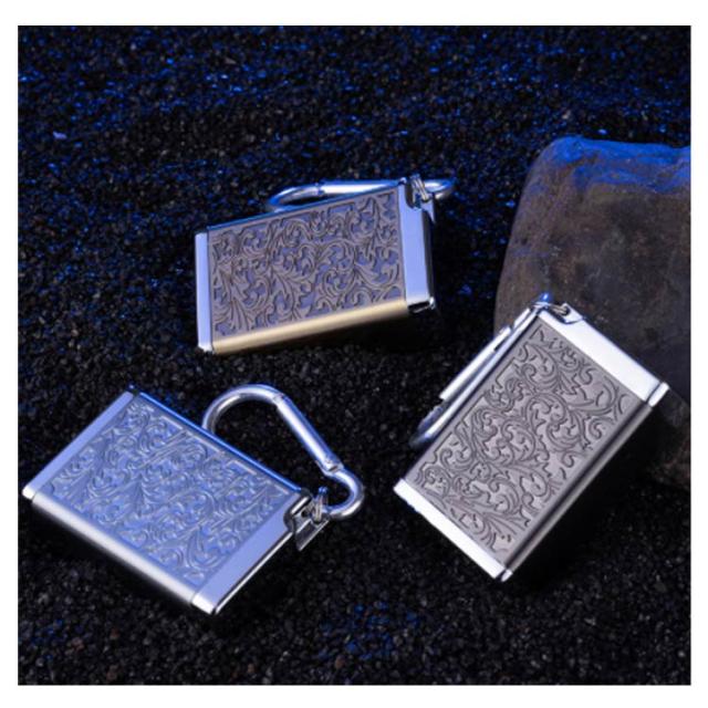 | シンプルで機能性のバランスが良いおすすめの灰皿です。 開口部も広く設計されており、吸い殻をサッと捨てやすく、お手入れも簡単。 合金を使用しており、断熱性・密閉性に優れており、安心してお使いいただけます。 蓋を開くには軽く上に向けて左右に移動するだけで蓋を開けることができます。 カラビナ付きで、ベルトループやバッグなどに引っ掛けて持ち運べるのが特徴。 小型サイズですが、8本のシガレットを入れる可能、一日分の灰容量が確保されます。 | |