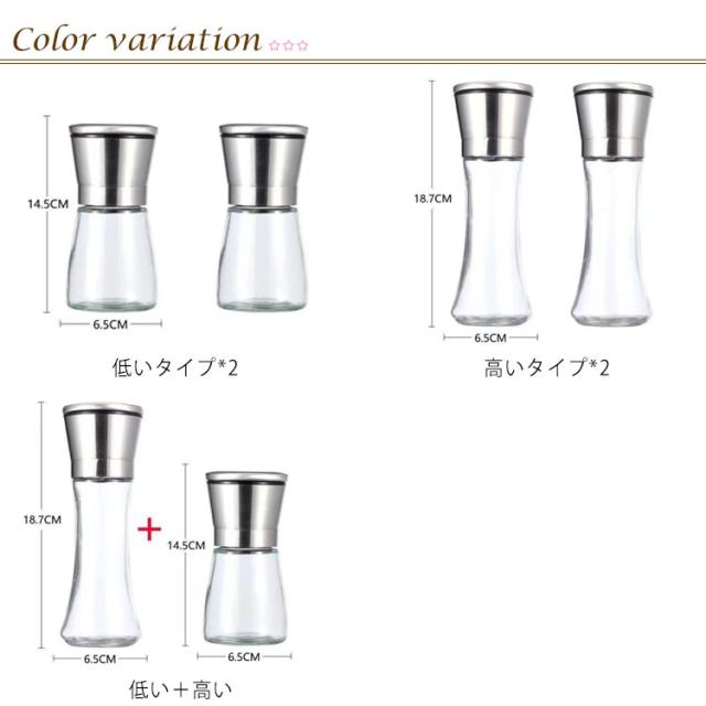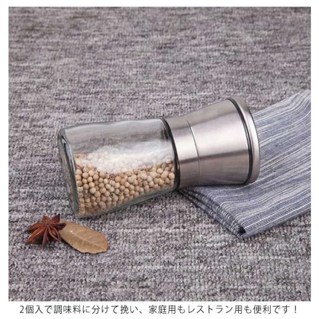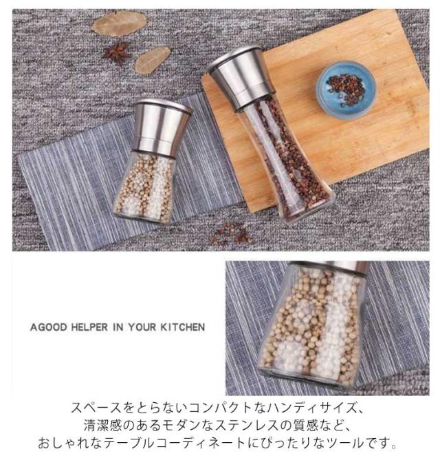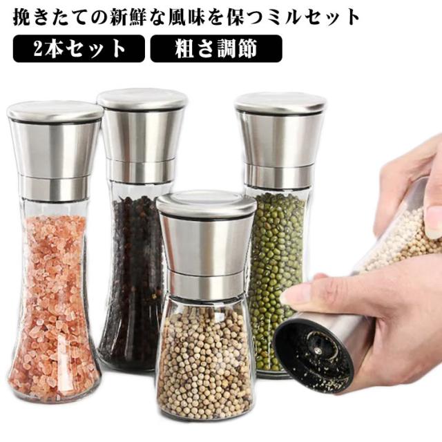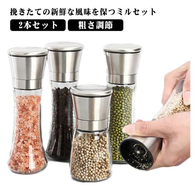 手動 2本セット プレゼント 調味料挽きペッパーミル 調味料 丈夫 コンパクト ソルトミル スパイスミル スパイスミル スパイス コンパクト 使いやすい ミル キッチンツール 調味料 調味料挽き 香辛料 粗さ調節 クリア ギフト ガラス