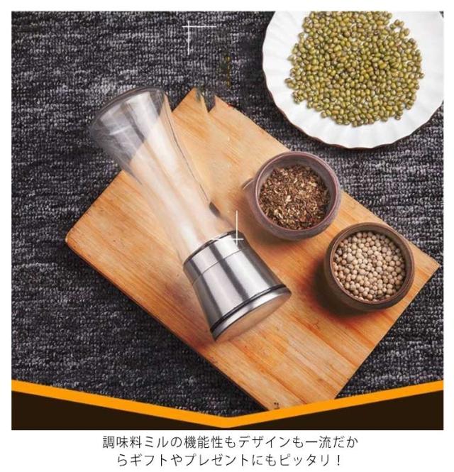 | 挽きたての新鮮な風味を保つミルセット 粗挽きから細挽きまで、調味料や料理に合わせて、お好みで調整することができます。 セラミック刃だから?岩塩にも使用できます。錆びる心配もないので、安心して使えます。 ペッパー・結晶塩・コショウ・唐辛子・山椒など数多くの調味料に適用できます! スペースをとらないコンパクトなハンディサイズ、清潔感のあるモダンなステンレスの質感など、おしゃれなテーブルコーディネートにぴったりなツールです。 2個入で調味料に分けて挽い、家庭用もレストラン用も便利です! 調味料ミルの機能性もデザインも一流だからギフトやプレゼントにもピッタリ! | |