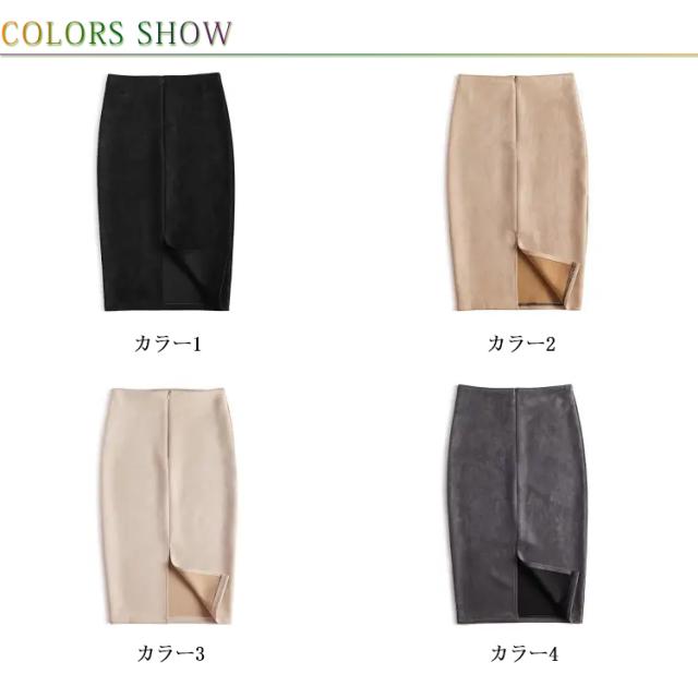 レザースカート カジュアル フェイクレザー エコレザー ひざ丈 バックスリット 20代 ハイウエスト スカート タイトスカート ロングスカート 膝丈 スカート オフィス OL タッチ 着?せ L 30代 40代 S M スウェード
