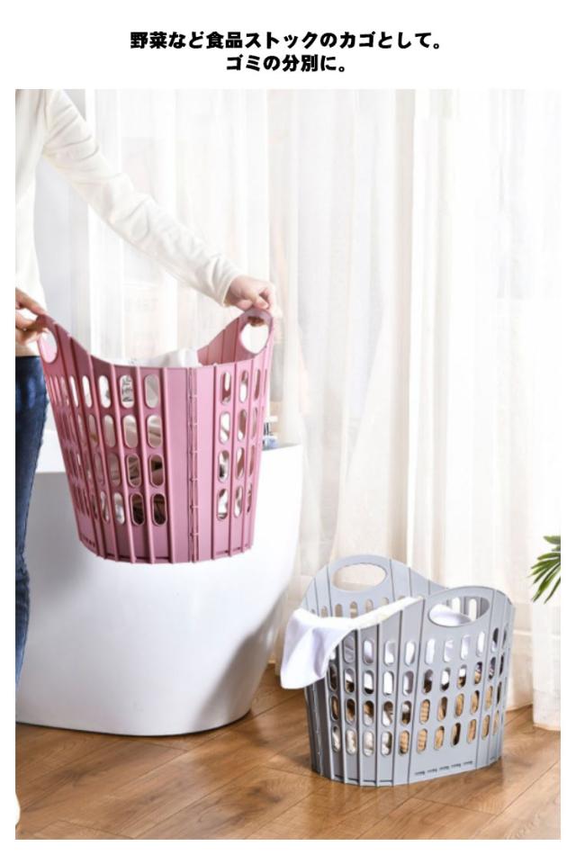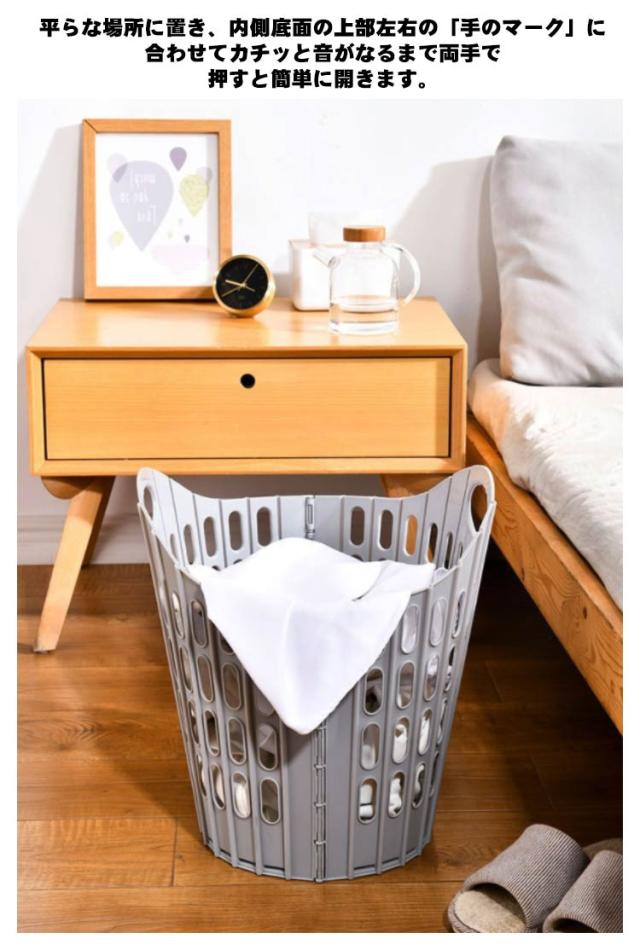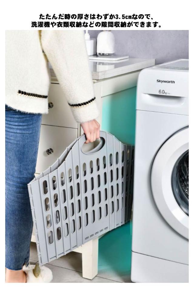 | 広げれば大容量、たためばコンパクト。 たたんだ時の厚さはわずか3.5cmなので、洗濯機や衣類収納などの隙間収納ができます。 広げた時は幅約55cmの大容量。家族の衣類がまとめて入り、毛布なども入れられます。 平らな場所に置き、内側底面の上部左右の「手のマーク」に合わせてカチッと音がなるまで両手で押すと簡単に開きます。 軽量タイプで持ち運びもラクラク。必要な時だけ広げて使えるので、外への持ち運びにも便利。 車のトランクなどに常備してお買い物かごとして。アウトドア、キャンプでも活躍します。 野菜など食品ストックのカゴとして。ゴミの分別に。 | |