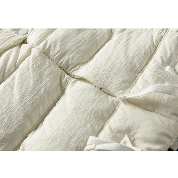 | 両サイドにストラップ、裾にレースデザインのファッショナブルなショートダウンジャケット。 隠しポケット:サイドのポケットには鍵や小銭などちょっとした小物を入れることができて便利。 軽くて暖かくて柔らかな着心地、防風防寒対策もバッチリです。どの角度から見ても美しいデザインが魅力です。 寒い季節でもオシャレを楽しみたい方にぴったりの、オススメのショートコートになっています。 | |