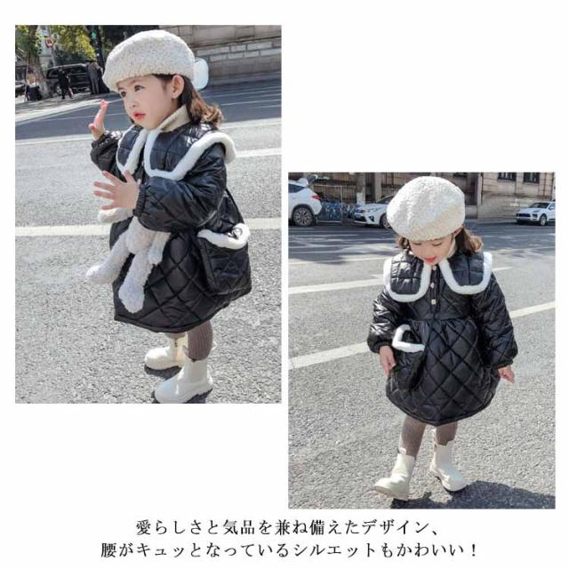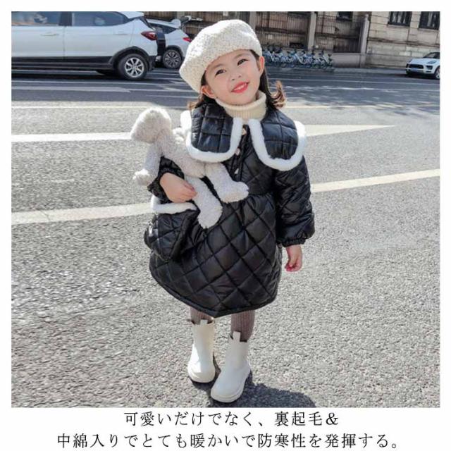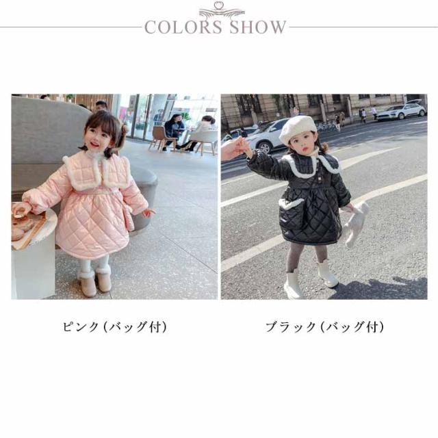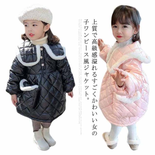 中綿ジャケット 子供服 キッズ ベビー 女の子 中綿ワンピース 裏起毛 コート アウター 防寒 秋冬 春 あったか かわいい おしゃれ 保温 暖かい ガールズ 女児 Aライン ピンク 黒 幼稚園 保育園 小学生 通学通園 80 90 100 110 120 130cm