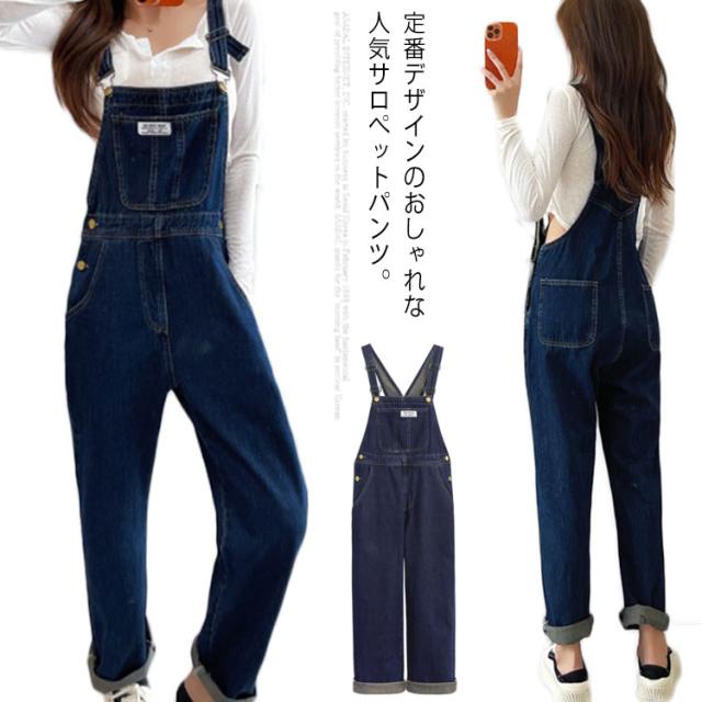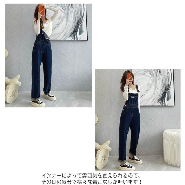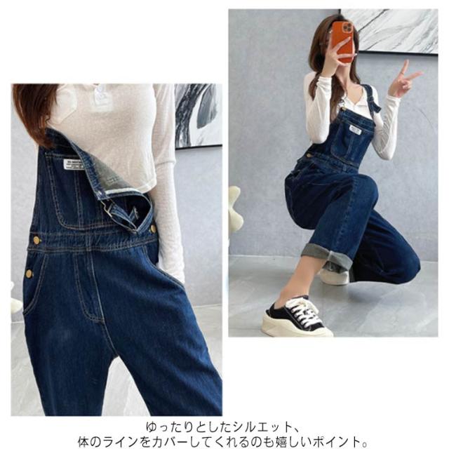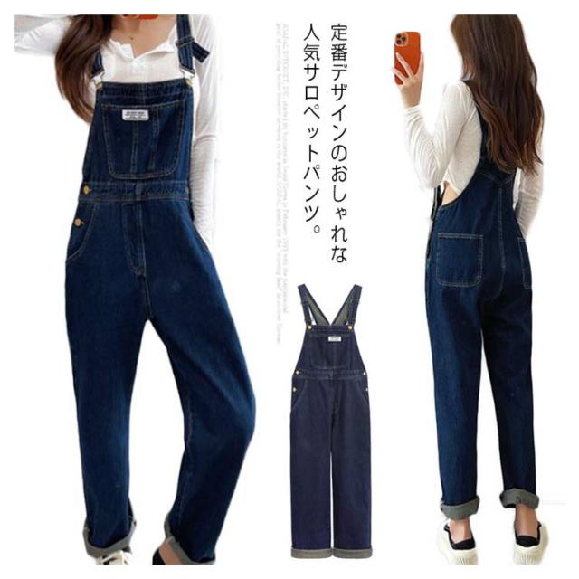 オーバーオール レディース ゆったり オールインワン デニムパンツ サロペット ボトムス 大きいサイズ ジーンズ ストレート カジュアル 普段着 春秋 着痩せ