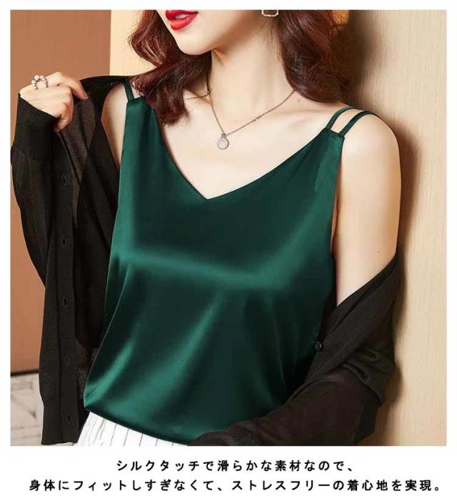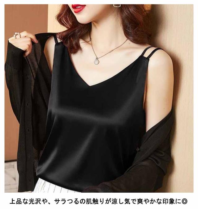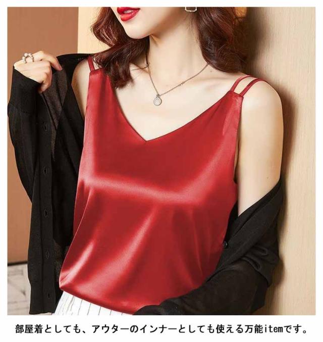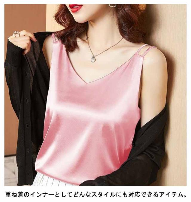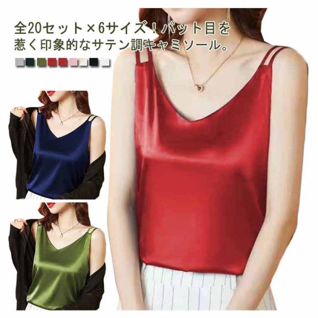 全20セット×6サイズ!サテン調キャミソール ノースリーブ 大人 レディース 涼感 トップス インナー キャミソール サテン調 送料無料 夏服 夏物 夏秋 大きサイズ フェミニン シルクタッチ
