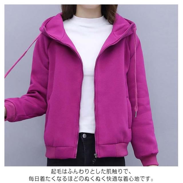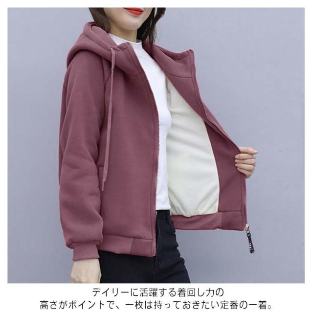 裏ボア ジップパーカー ジャケット レディース ジップアップ パーカー アウター カーディガン トップス 上着 長袖 ハイネック フリース スウェット トレーナー 部屋着 ルームウェア 裏起毛 無地 フード付き 防寒 厚手 秋 冬 おしゃれ リラックス