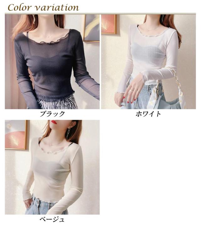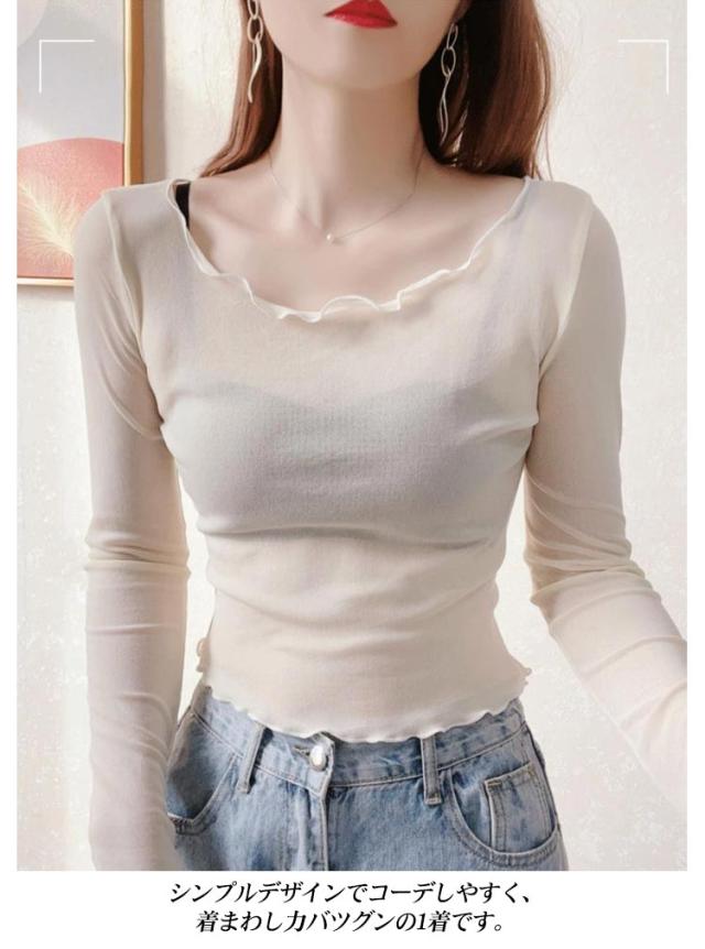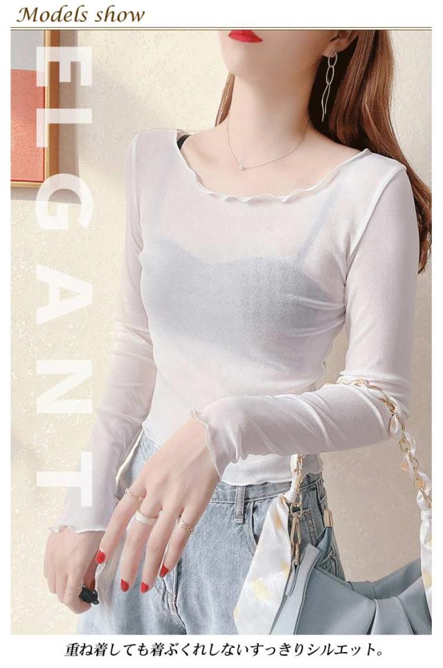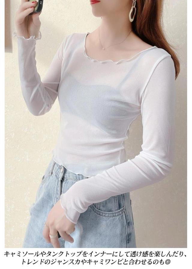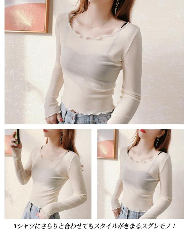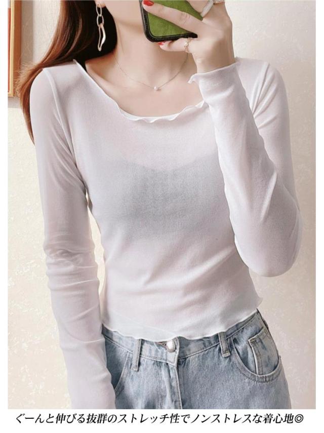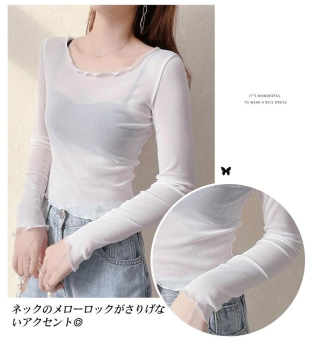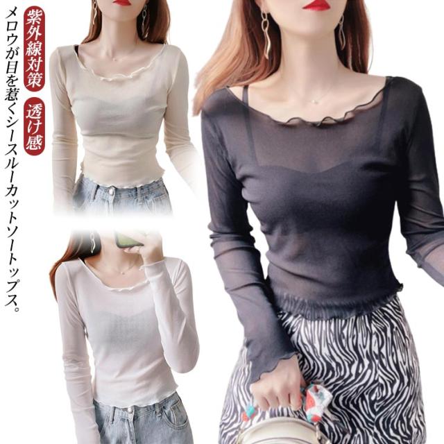 長袖 春夏 シースルー レディース メロウ カットソー 大人 ゆったり 透け感 トップス 送料無料 クルーネック かわいい 薄手 重ね着 シアー レイヤード シアートップス 無地 涼しい 体型カバー 日焼け防止 紫外線対策 メロウ カジュアル インナー