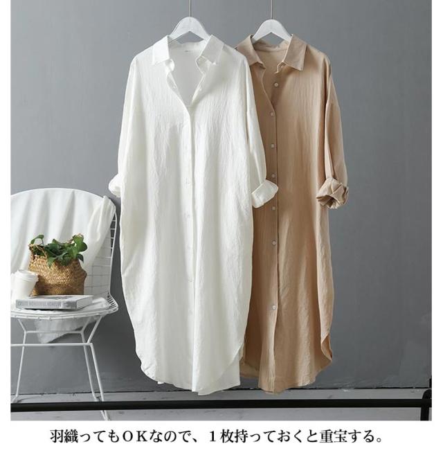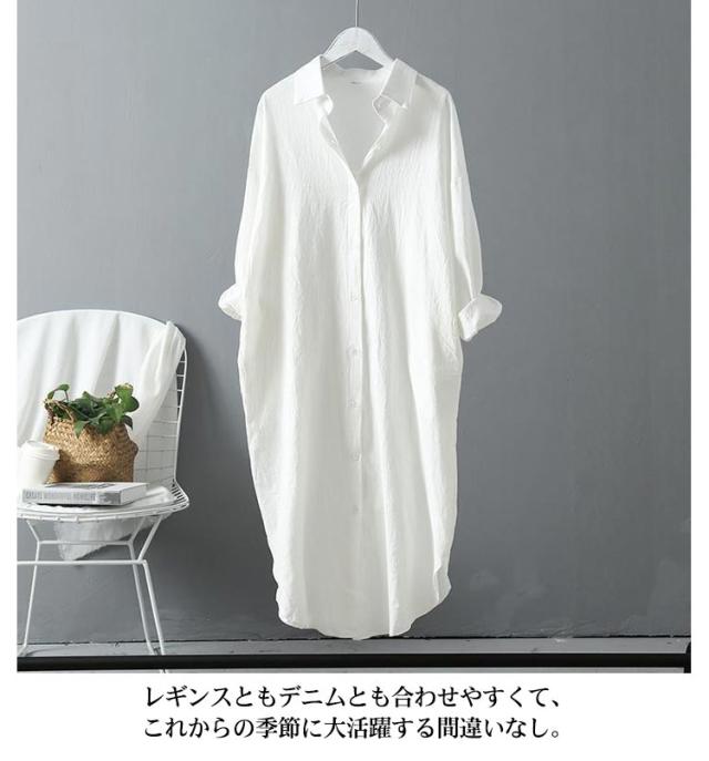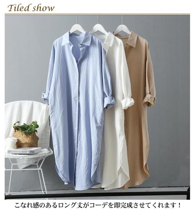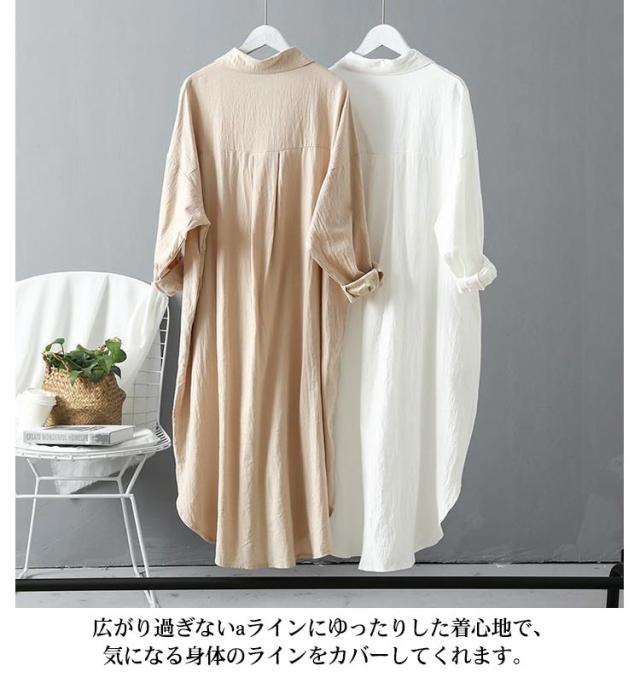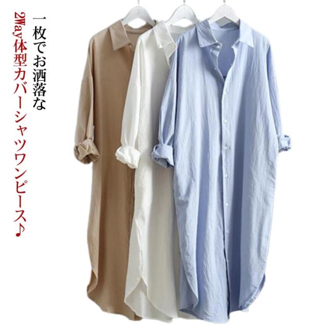 長袖 レディース シャツ オーバーサイズ 春 送料無料 シャツワンピース 2WAY アウター チュニック シャツブラウス コットン 体型カバー 白 シャツワンピ ロングシャツ 羽織り 無地 きれいめ ビッグシルエット 通勤 ロング