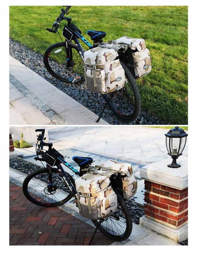 自転車用リアバッグ 自転車用サイドバッグ 撥水加工 反射材付 大容量 自転車用パニエバッグ 防水カバー付き 迷彩柄 フック式&ベルト式 多機能 ロードバイク マウンテンバイク クロスバイク ロングツーリング 無地 バイクバッグ