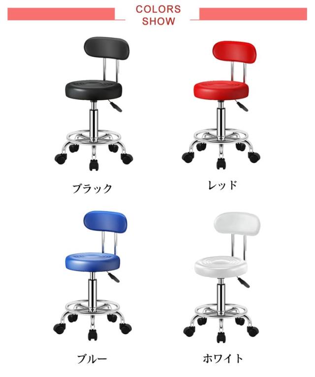 高さ45〜57cm いす ハイチェア キャスター付き 高さ調節可能 背もたれ付き 360度回転 ダイニングチェア カウンターチェア 昇降式 おしゃれ スツール バーチェアー キッチンチェア エステスツール カフェ 丸椅子 ネイル サロン 美容室 施術 診察 作業スツール 背もたれ付き
