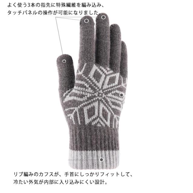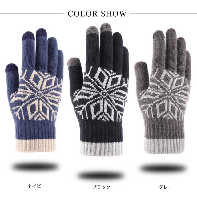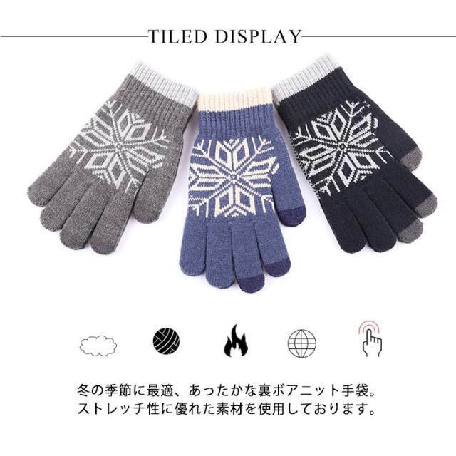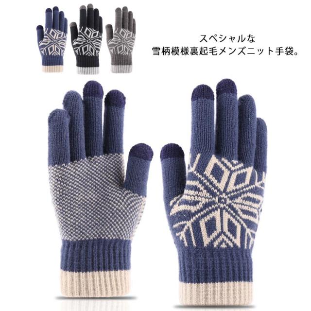 手袋 メンズ スマホ対応 暖かい 防寒 ニット ニット手袋 グローブ 裏ボア 雪柄 ノルディック 厚手 秋冬 防寒 防風 あったか オシャレ カジュアル 男女兼用 ファッション小物 ギフト プレゼント 贈り物 送料無料