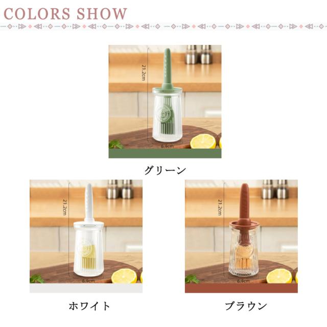 | やわらかいシリコンハケで手早く塗れるのでお料理もラクラク。 ハンドルは滑り止め加工を施されたPP素材、握り心地抜群。 刷毛部分は柔らかく使いやすいシリコン製、お手入れ簡単。 容器は安心のガラスで出来ているので油分も落としやすく洗いやすさがうれしいポイント。 フライパンやたこ焼き器の油引きはもちろん、お好み焼きにソース、ピザ生地にケチャップやピザソース、トーストにマヨネーズなどなど、いろいろな調味料に使えます。 | |