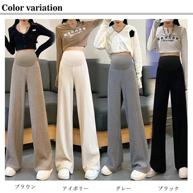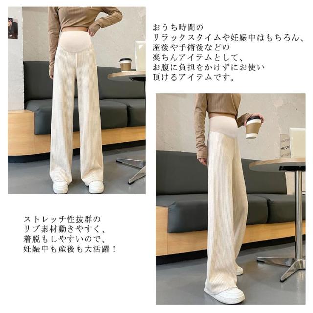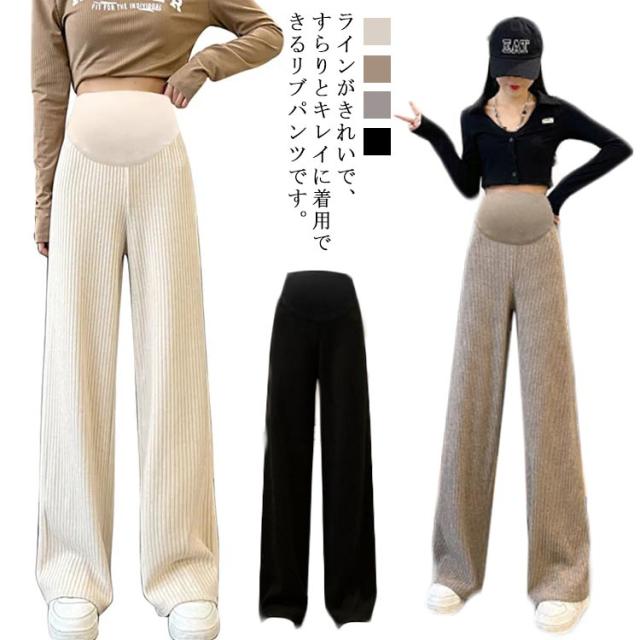 L リブ ストレッチ ストレートパンツ 体型カバー ゆったり ワイドパンツ 妊婦服 マタニティパンツ マタニティウェア ズボン 産前 2XL ルームウェア リラックス カジュアル 大きいサイズ M 産後 XL アジャスター付き