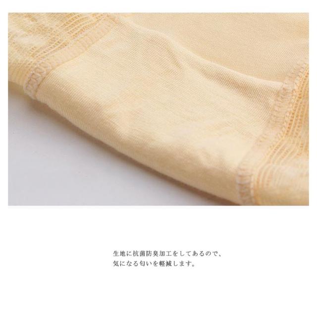 | おなかをすっぽりつつみこむ 伸びの良い深ばきシームレスショーツ。 おへその上までしっかりくる深履き仕様。お腹を冷えから守り、子宮を圧迫しません。 ウエストと裾部分に華やかなレースをほどこしています 綿混素材で肌ざわりがやさしい。マチ裏は綿100%で肌に優しい仕様です。 コットンなのにストレッチ性の高い生地は動きやすさとフィット感があり 生地に抗菌防臭加工をしてあるので、気になる匂いを軽減します。 | |