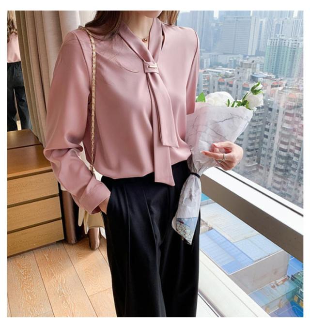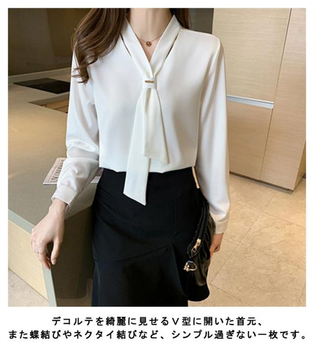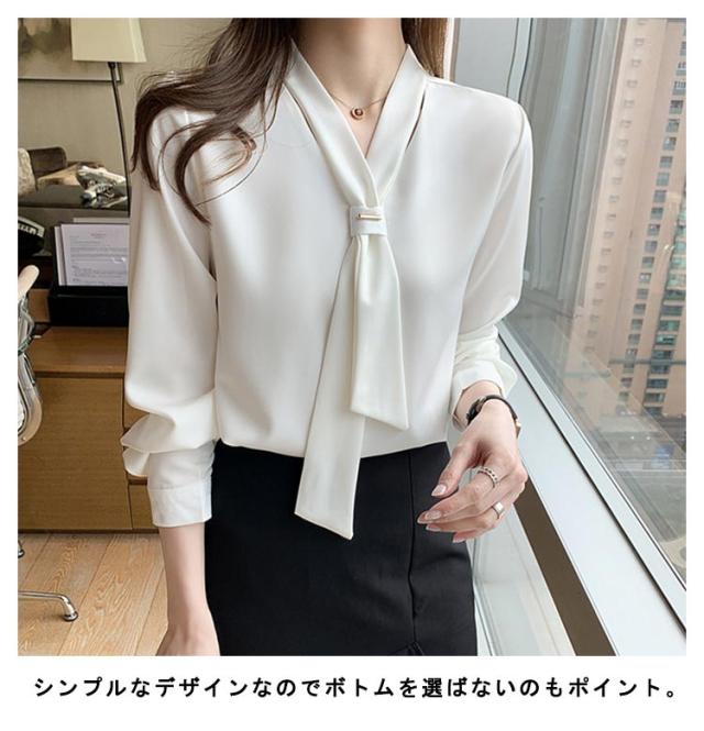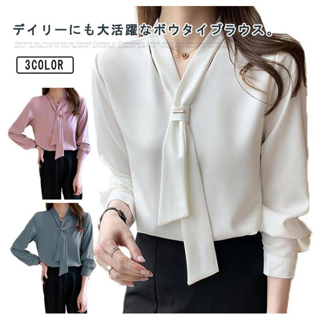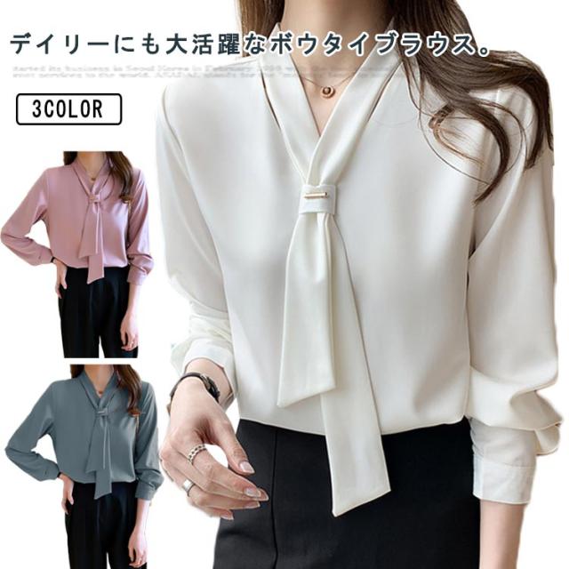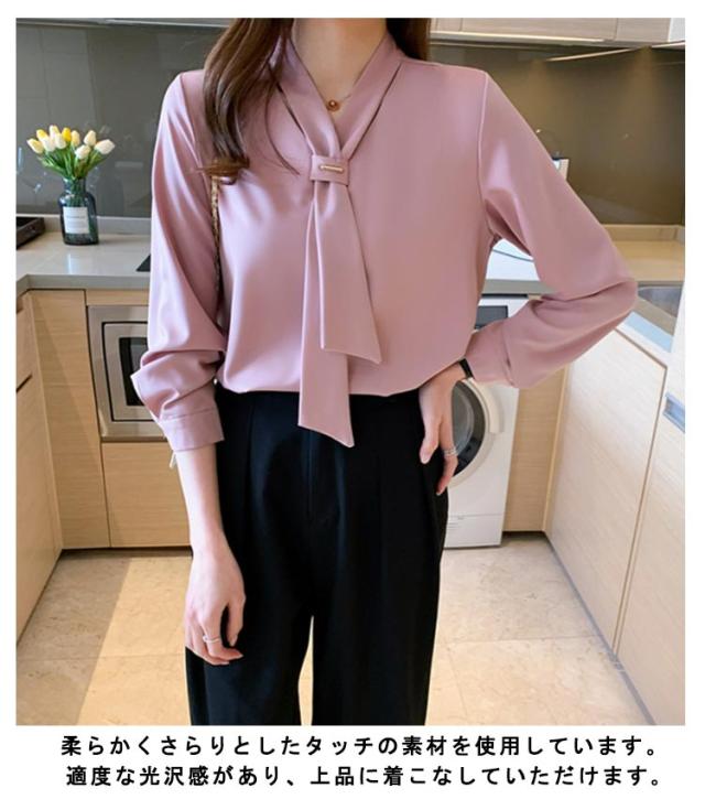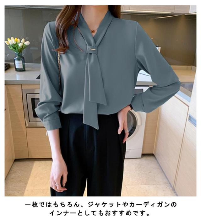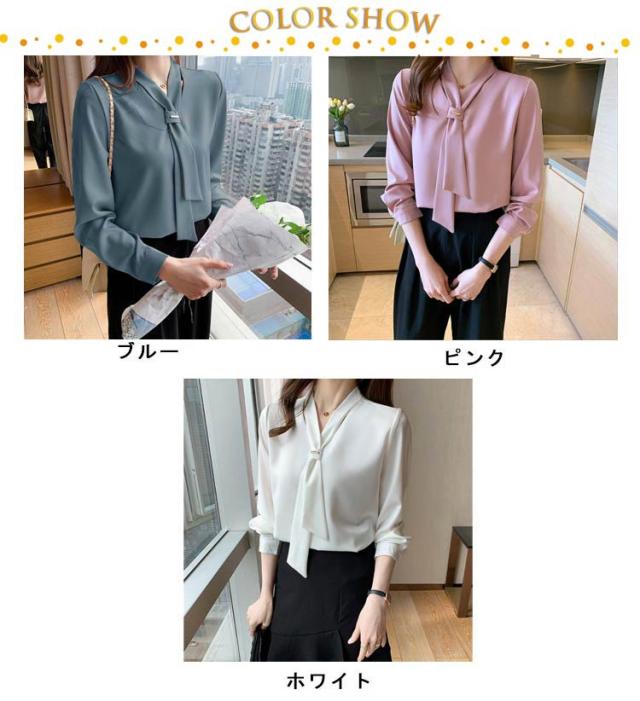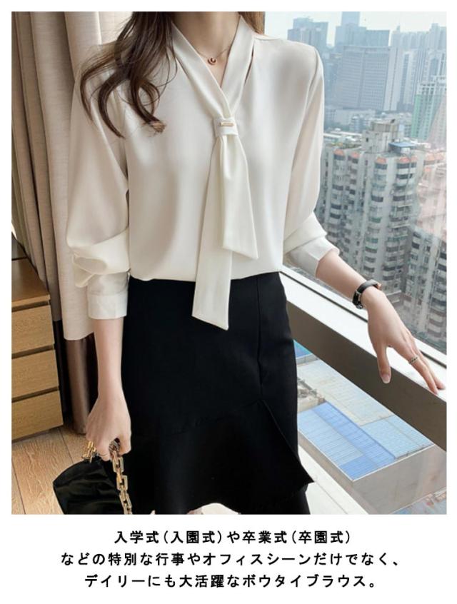 リボン付き 長袖 トップス レディース ボウタイ 入学式 リボンタイ 通勤 卒業式 30代 長袖ブラウス シャツ シフォン セレモニー オフィス お仕事 大人可愛い デイリー 大きいサイズ 無地 シンプル 50代 40代 ブラウス