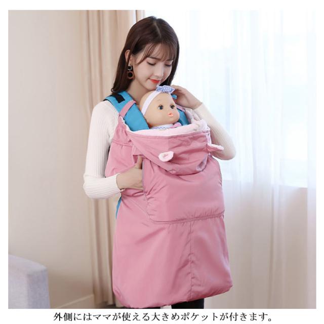 抱っこ紐 防寒ケープ ベビーカー 2WAY 防寒 防寒カバー ポッケト付き 裏ボア フリース 保温性 多機能 あったか 可愛い 耳付き