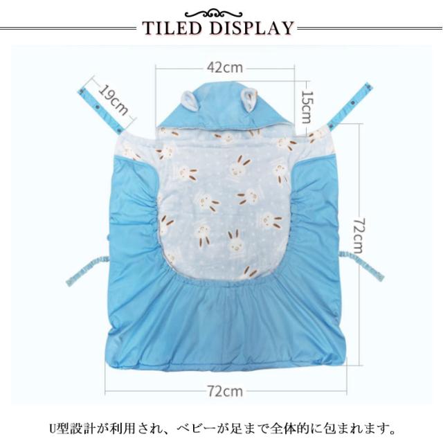 | 高品質な天然綿が詰まられて、ポカポカで暖かい。 裏地はフリース製で、天然素材のおかげて、肌触りがよくて柔軟です。 U型設計が利用され、ベビーが足まで全体的に包まれます。 外側にはママが使える大きめポケットが付きます。 ベビーキャリーやベビーカーや抱っこやおんぶなどにもご使用いただけます。 | |