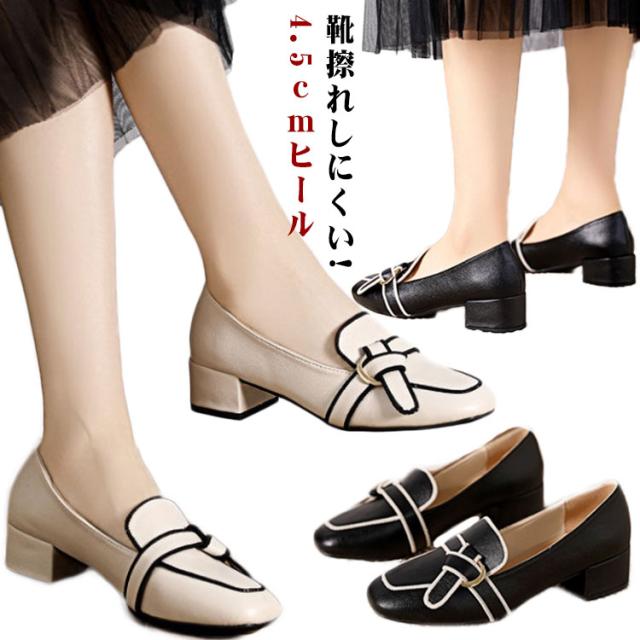 ローファー レディース 立ち仕事 パンプス スクエアトゥ 4.5cmヒール 軽量 シンプル 痛くない 靴擦れしにくい 合皮 卒業式 靴 滑り止め オフィス 通勤 柔らか おしゃれ 就活 忘年会 軽量