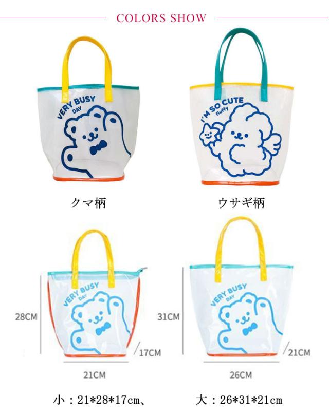 | うさぎ/くまの2デザインに!大容量なプールバックです。 底部分がメッシュ素材なので砂浜での使用などでは、砂が落ちるのも嬉しいポイント◎ 水着、タオル、日焼け止め、傘などを収納できます。 丈夫で耐久性があり、簡単には変形しません。 ファッショナブルなデザインで、水泳だけでなく外出時にも使用でき、様々なシーンに適しています。 | |