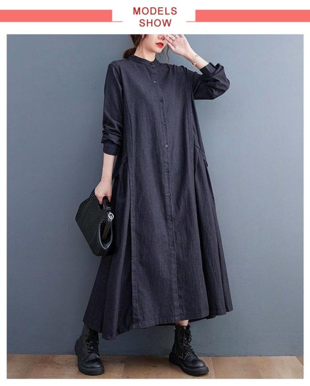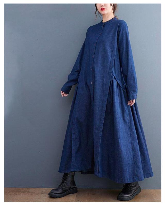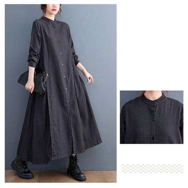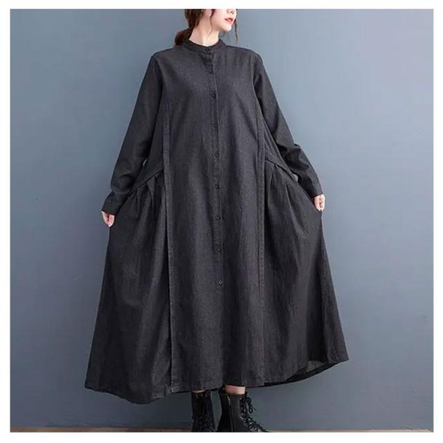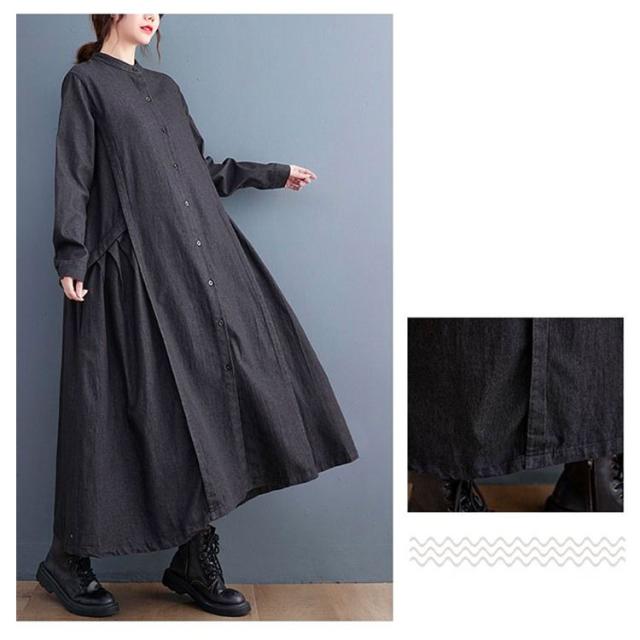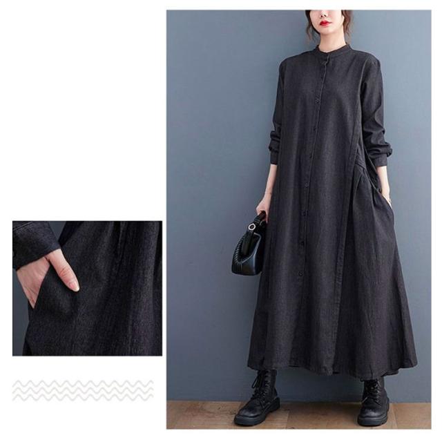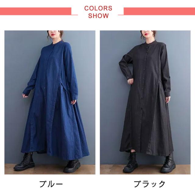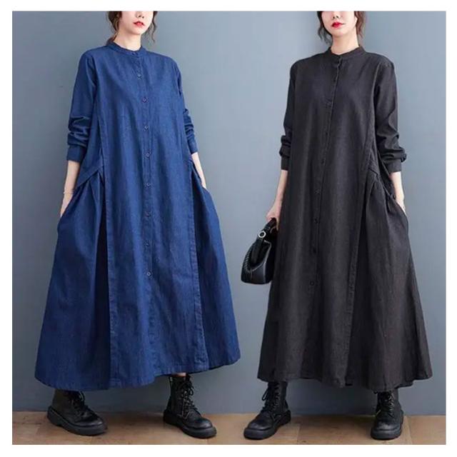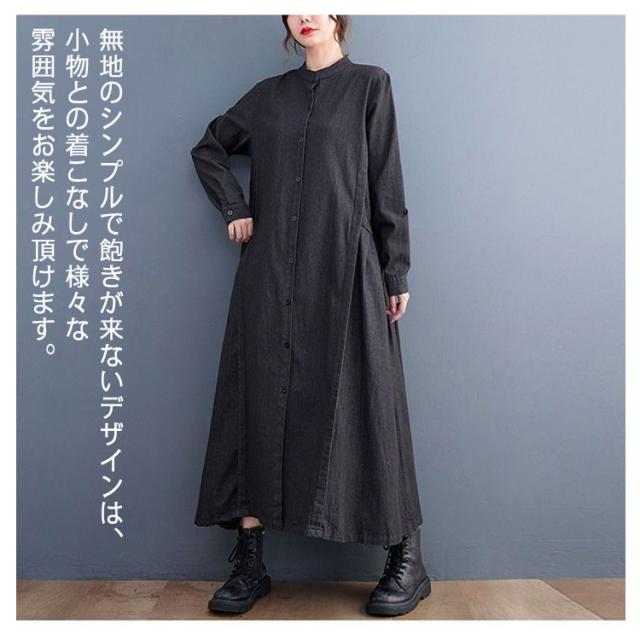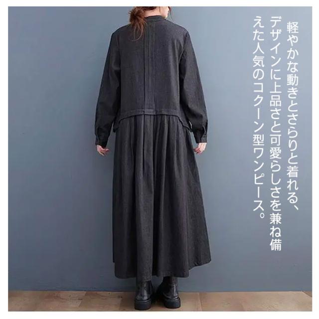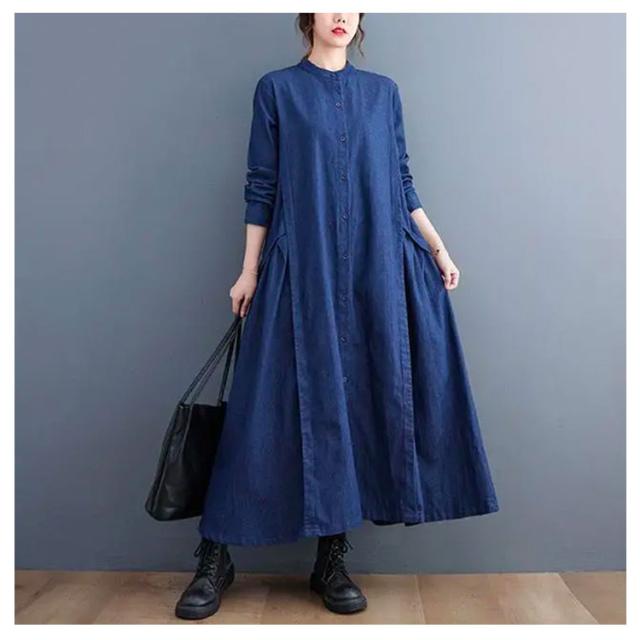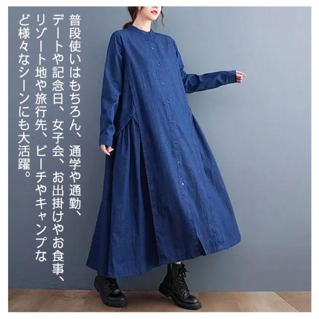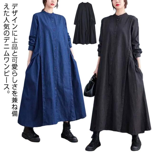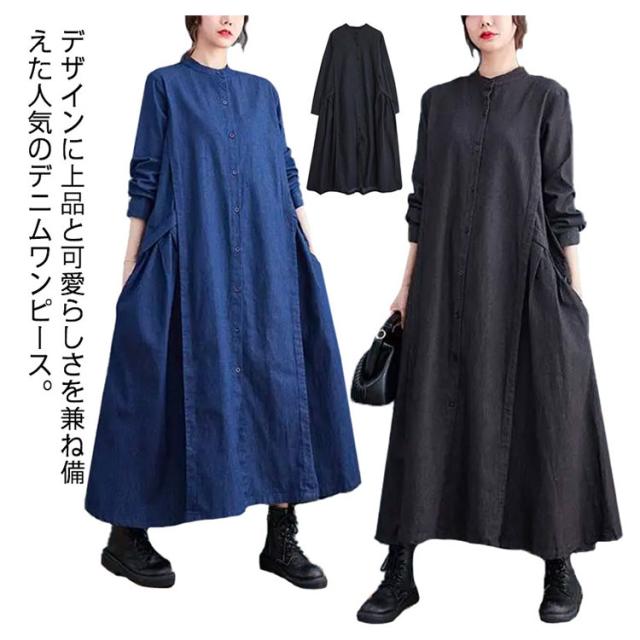 春 秋 ロングワンピース デニムワンピース ワンピース 長袖 プルオーバーマキシ丈 マキシワンピー レディース 可愛い ゆったり 40代 20代 30代 着痩せ