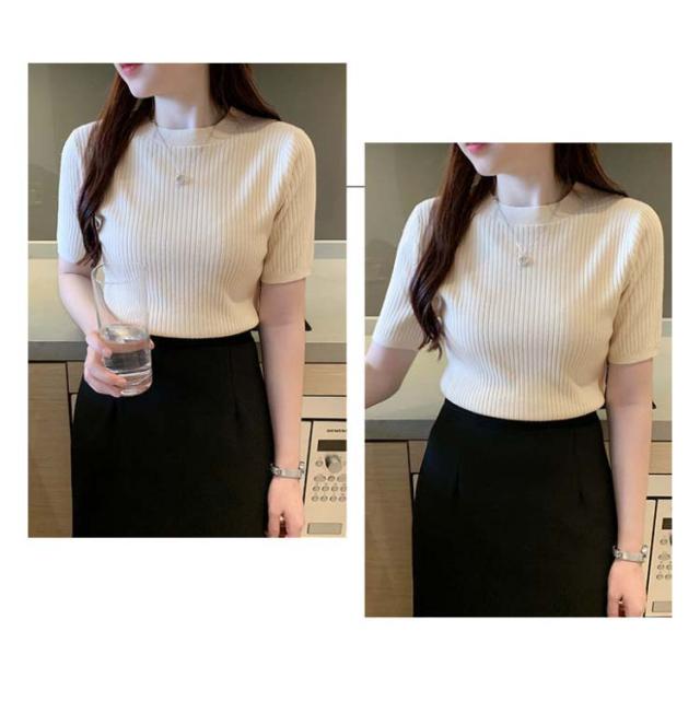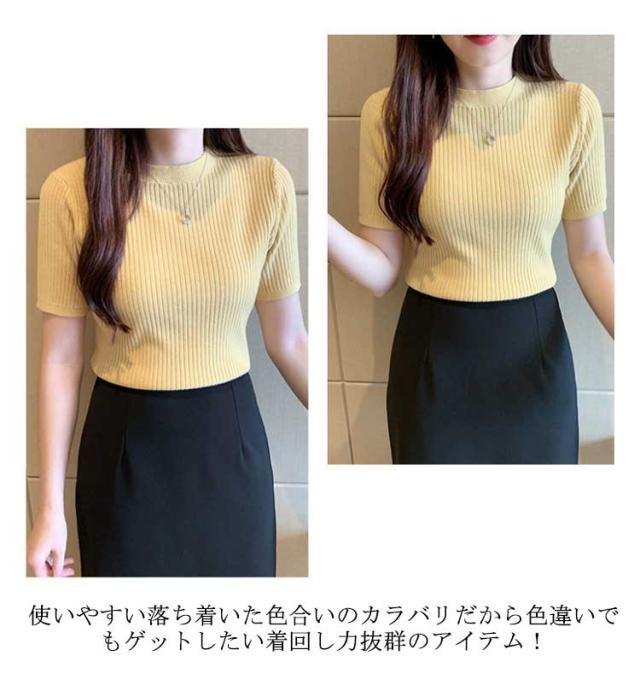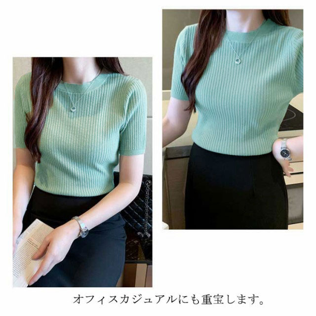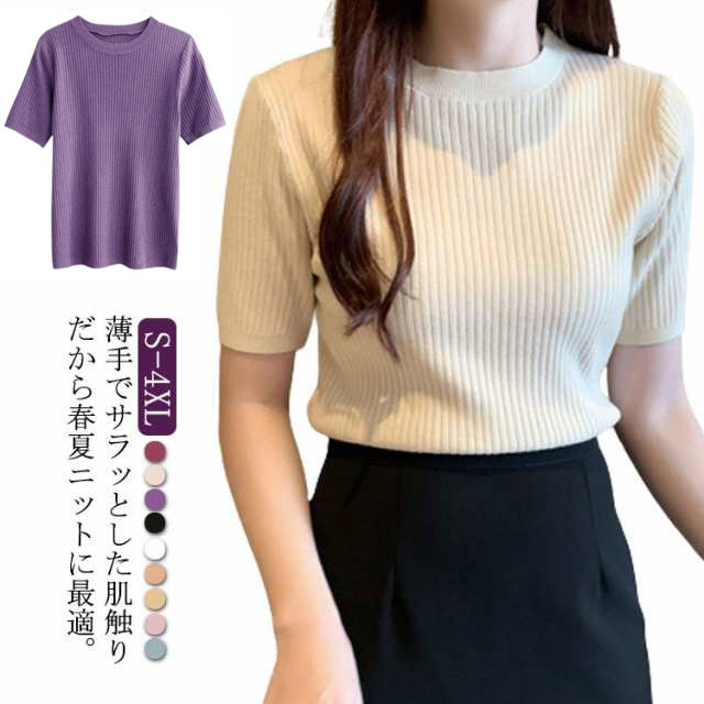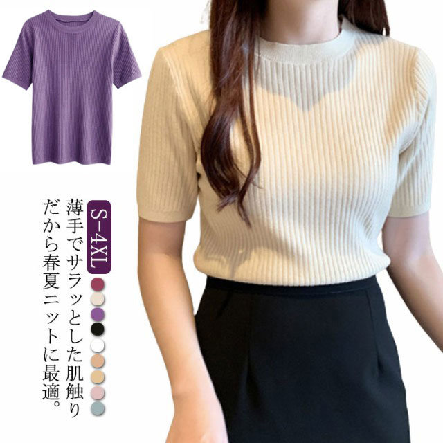 レディース 夏服 トップス ニット プルオーバー クルーネック 半袖 トップス ライトニット 着痩せ カットソー フィット 細見え デイリー tシャツ 無地 シンプル オフィスカジュアル きれいめ 上品 大人 サマーセーター 春 夏 春服 サマーニット