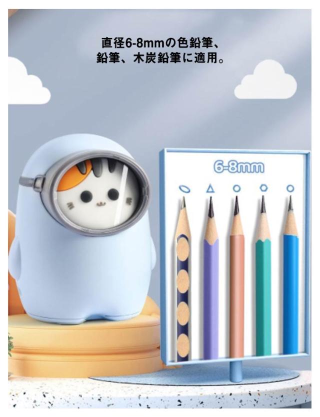 | かわいいクマ?ネコ?ペンギン型の電動鉛筆削り。【USB充電式?電池両用】【8000回削り可能】 実用性&デザイン性を兼ね備えた鉛筆削りがほしい! 刃は超硬な素材タングステン鋼製で8000回削り可能! 耐久性に優れたスパイラル切削刃を使い、高速回転で削り切れる。3〜5秒以内に鉛筆を完璧に削りあがれます。耐久性、高効率に優れている。直径6-8mmの色鉛筆、鉛筆、木炭鉛筆に適用。 鉛筆を差し込んで、軽く押しながら、シャープナーが自動的に作業し始め、ボタンを押す必要なし。ダストボックスを外すと作動しない安全仕様で、手に傷つけない安全性が保障できて、子供でも安全的に操作可能。 折芯除去機能付き、機体を解体する必要がない。こまめなごみ捨てのいらない大容量なダストケースがあり、バッグのふたを開くだけで手入れ簡単。ムダ削り防止機能つき。 ペン先の太さ調整:3種類(細、中、太)、幅広い用途に対応します。 大容量の透明窓:中心可視でいつでもチェック、お手入れも簡単。 | |