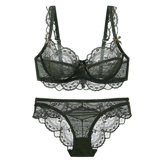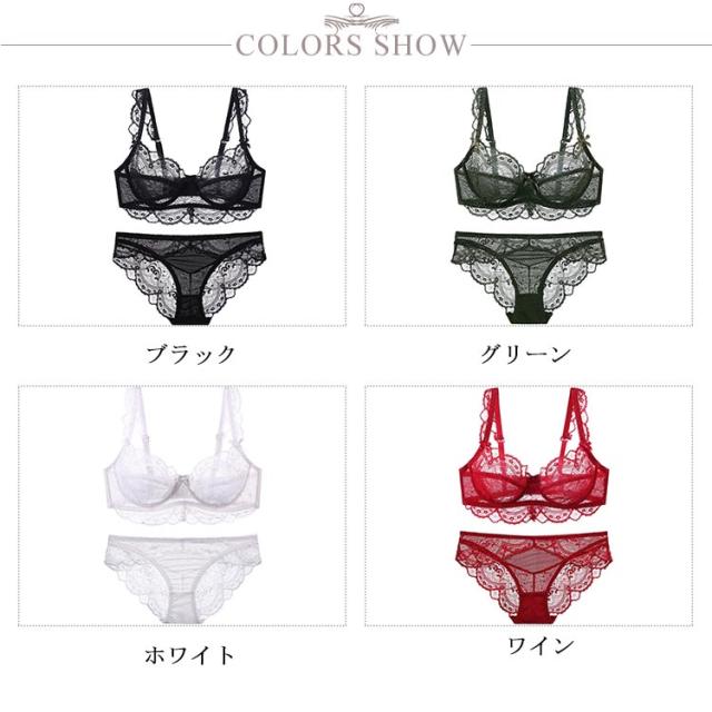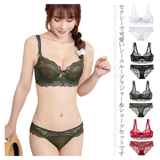 ブラジャー ショーツ セット 総レース シースルー ワイヤー入り パッド無し セクシー 透け 超薄型 かわいい 大きいサイズ 脇肉すっきり バストアップ 脇高 ブラ ランジェリー 女性 下着 美胸 送料無料