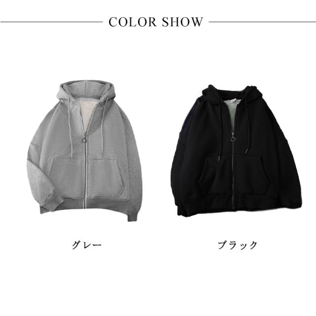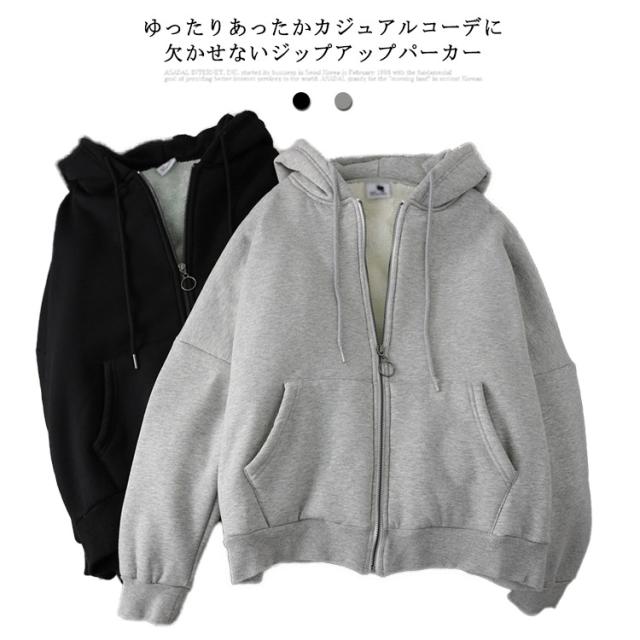 裏ボア パーカー レディース ジップパーカー フード付き スウェットパーカー ボア あったか 秋冬 アウター プルーオーバー ゆったり ポケット付き 無地 ドロップショルダー お洒落 カジュアル ロング丈 長袖 トップス ライトアウター BIG ビッグ 大きいサイズ