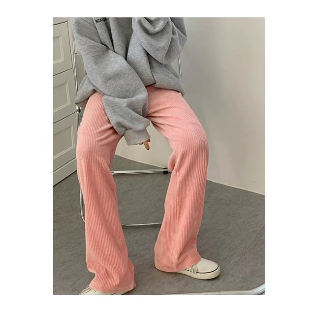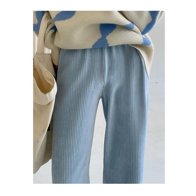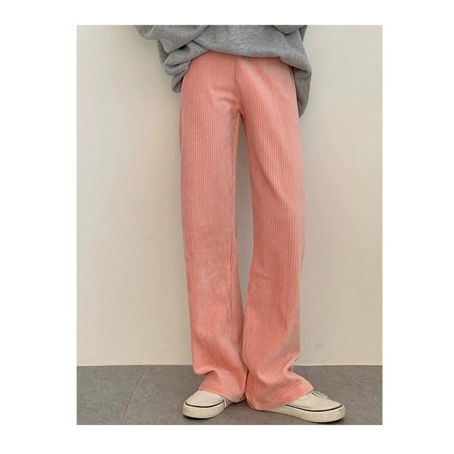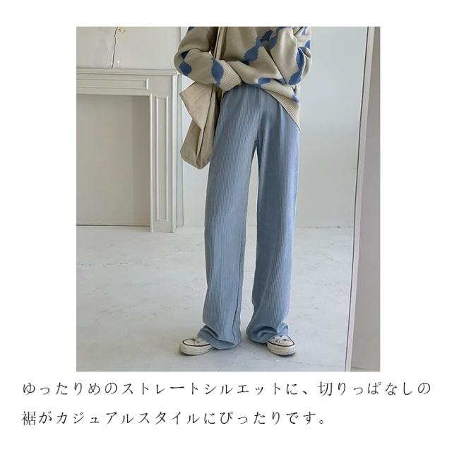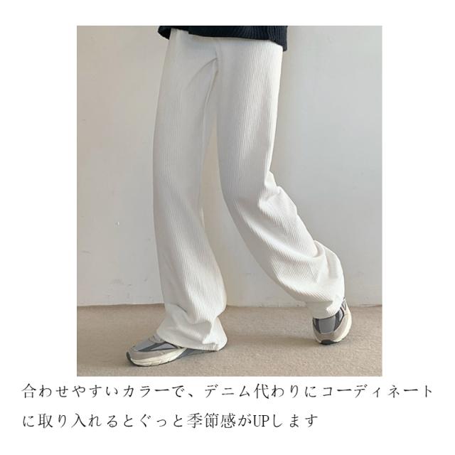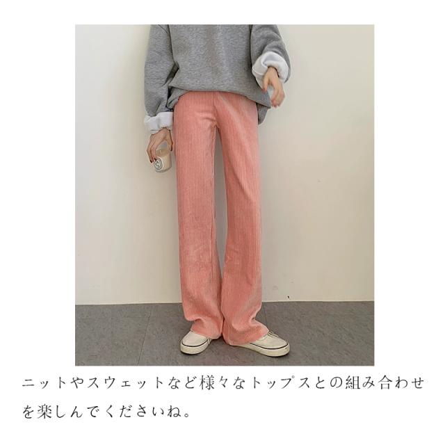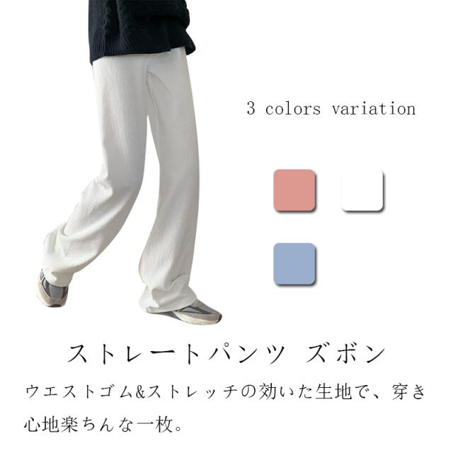 ストレートパンツ ズボン ボトムス レディース ロングパンツ コーデュロイ フルレングス ストレート ウエストゴム ゆったり 大きいサイズ 無地 長ズボン ボトムス 春 秋 冬