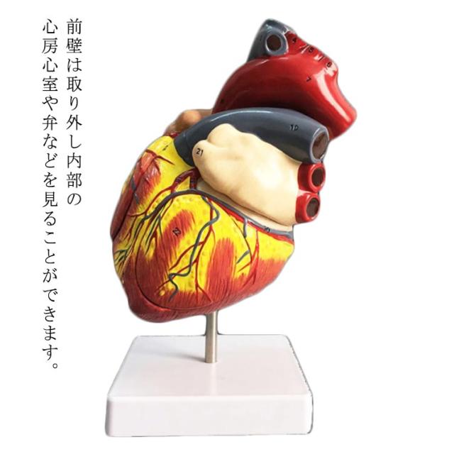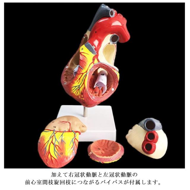 | 前壁は取り外し内部の心房心室や弁などを見ることができます。 加えて右冠状動脈と左冠状動脈の前心室間枝旋回枝につながるバイパスが付属します。 スタンド付 | |