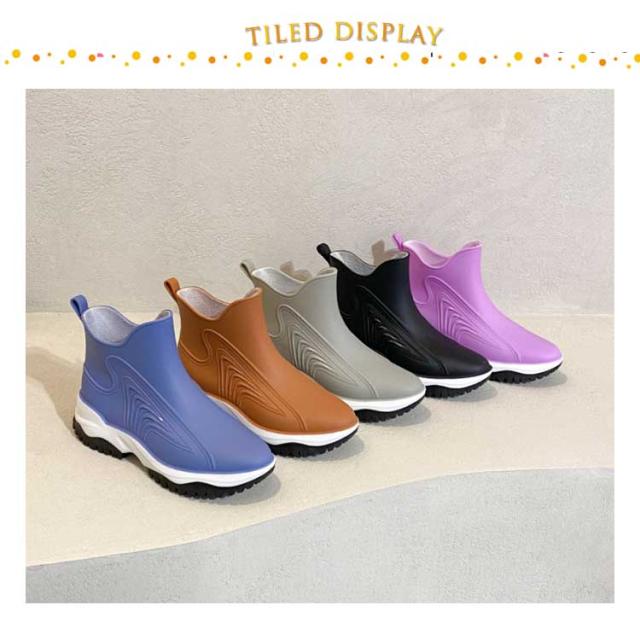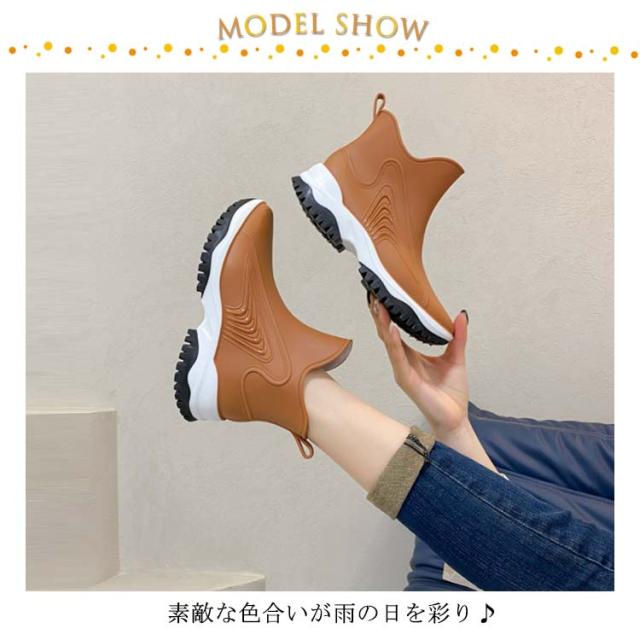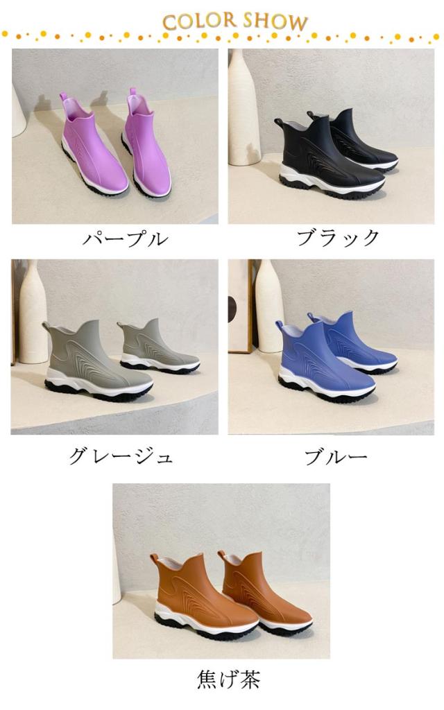 | 素敵な色合いが雨の日を彩り♪ 雨の日もスタイリッシュに履いていただけるレインブーツ。 一体成型の完全防水なので、雨の日も雪の日も、水に濡れることなく履くことが出来ます。 キレイめなシルエットなのでお洒落をした日でも足元が浮く心配がありません。 スニーカーのようなおしゃれ感を出し、晴れの日に履いても違和感なし。 凸凹のあるアウトソール、グリップ力がよく、滑りにくい。雪の日も安心。 | |