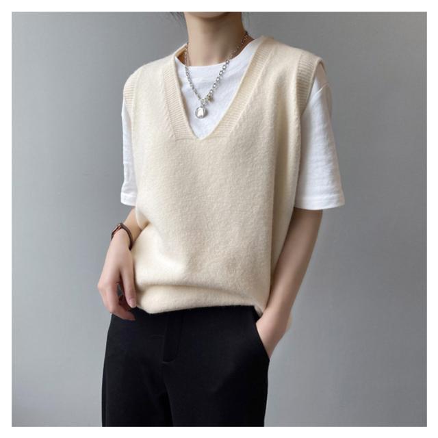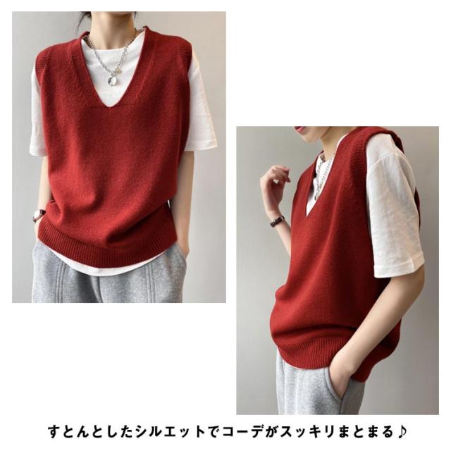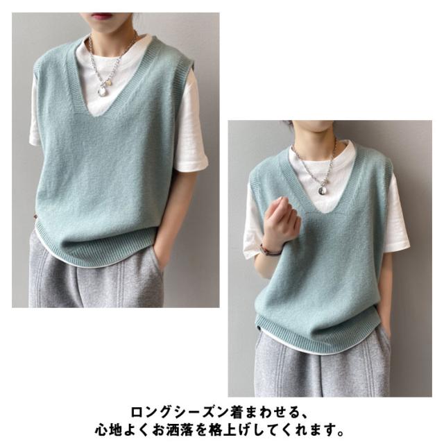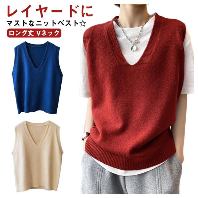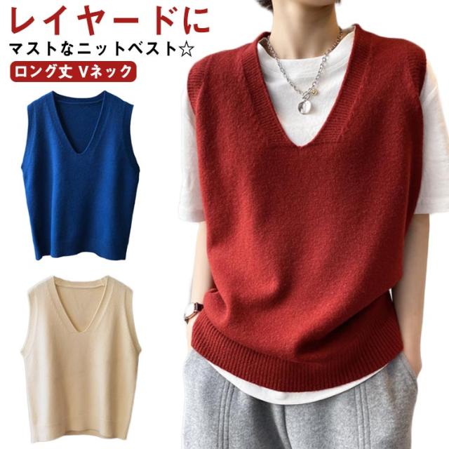 体型カバー 秋服 トップス ニットベスト ベスト ニット ノースリーブ レディース ロング丈 重ね着 シンプル 無地 Vネック 通勤 ゆったり 大人 おしゃれ レイヤード キレイめ カジュアル オフィス お出かけ 普段着 秋冬 秋 送料無料