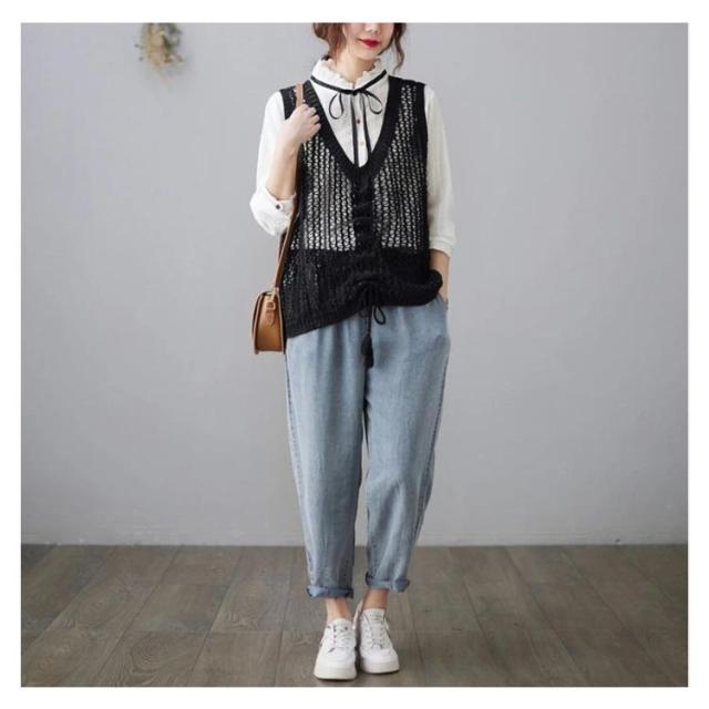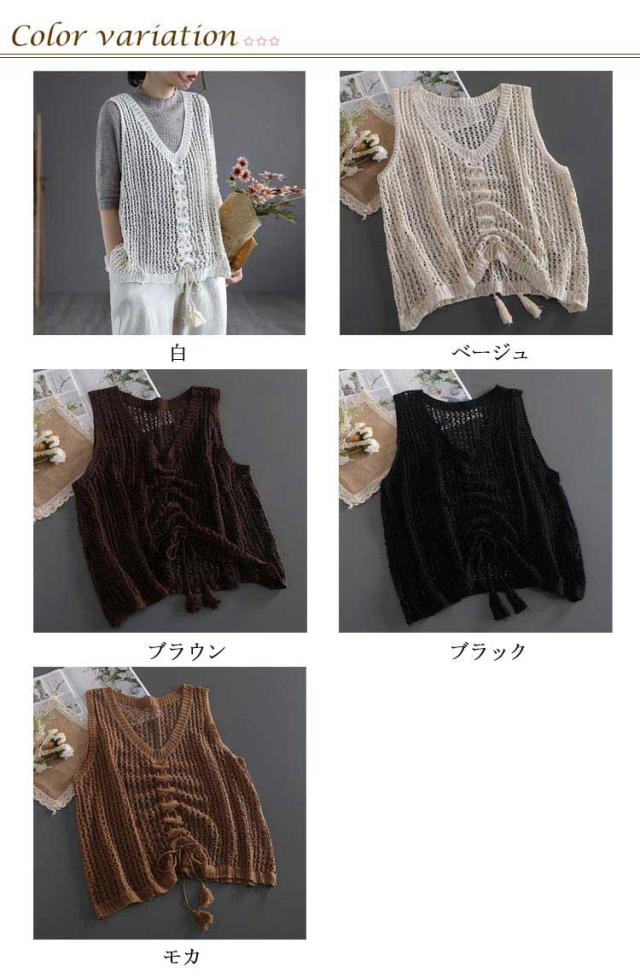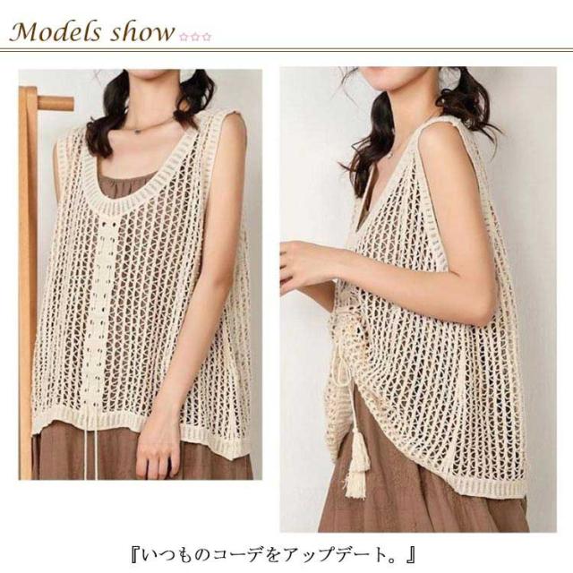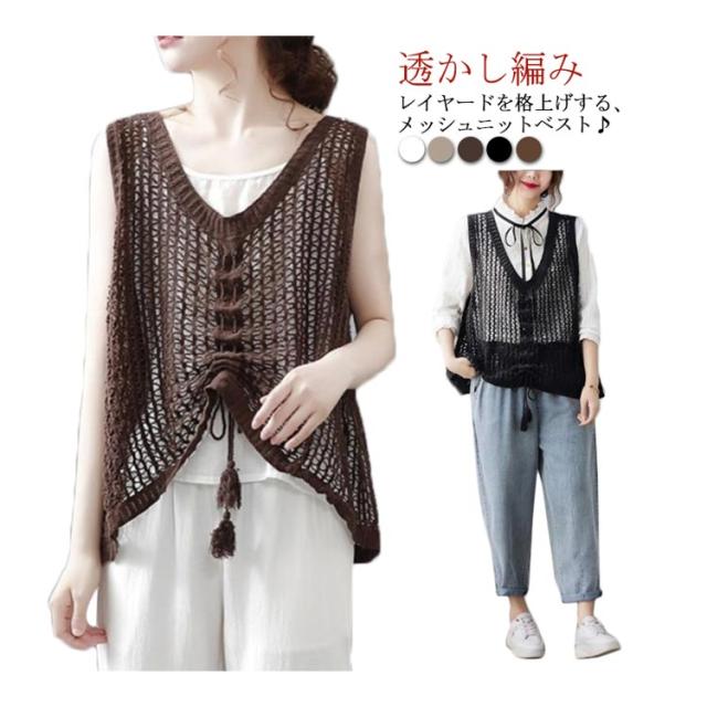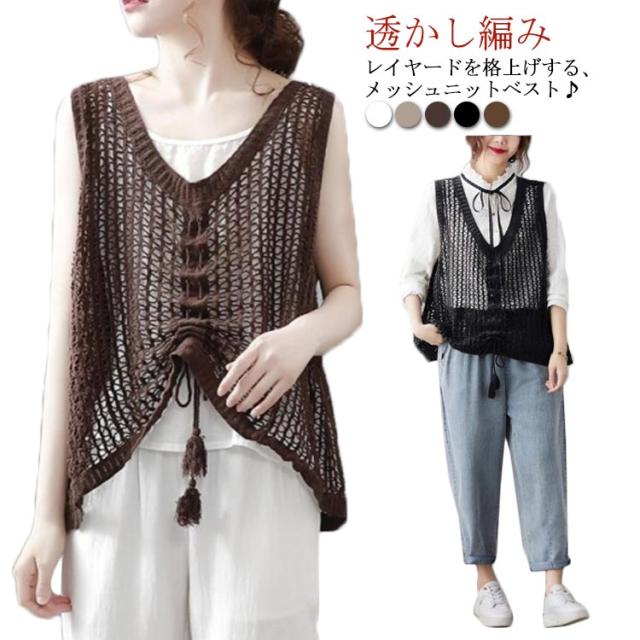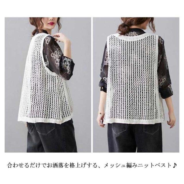 ニットベスト きれいめ ベスト トップス サマーニット メッシュ編み 春 メッシュ トップス 透かし編み レディース レイヤード風 ベスト プルオーバー メッシュニット 夏 ノースリーブ 重ね着 ニットベスト 通勤 袖なし 送料無料