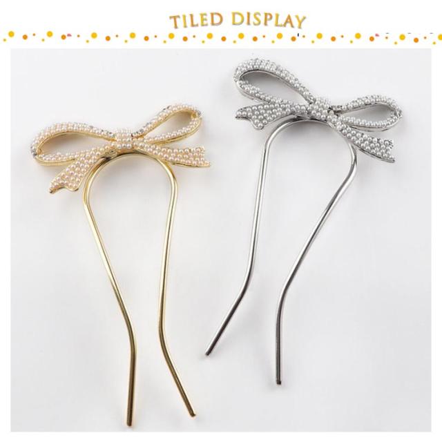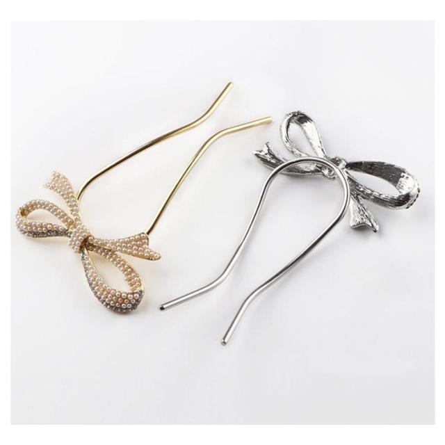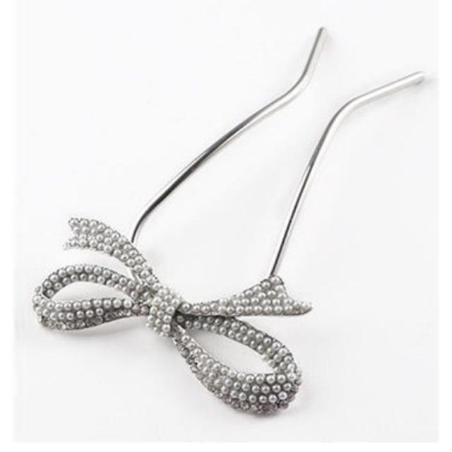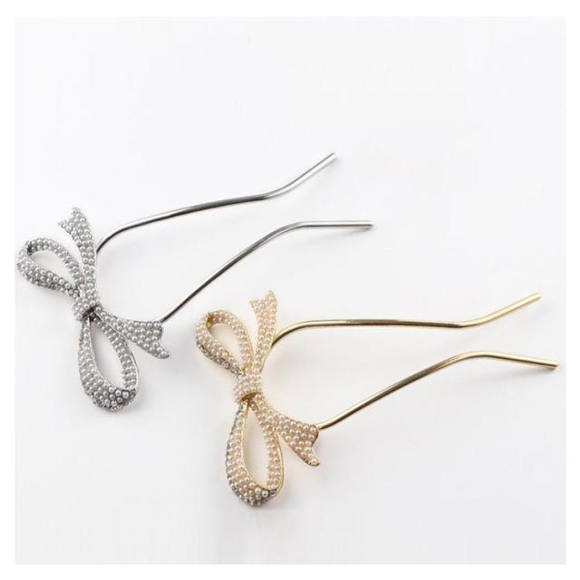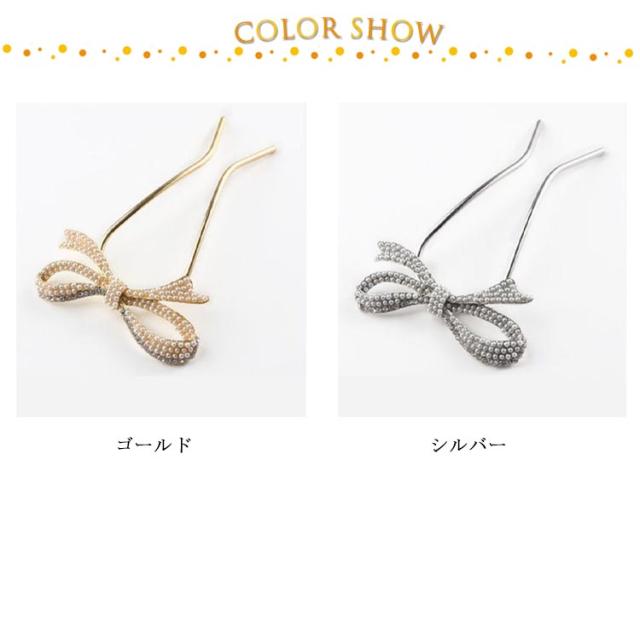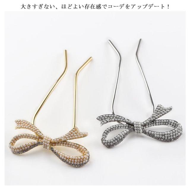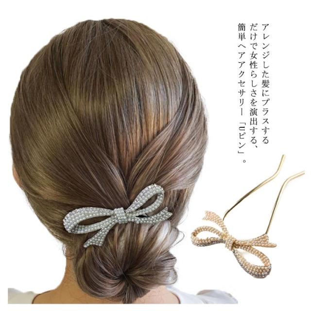 送料無料 Uピン パール 髪飾り ヘアアクセサリー リボン シルバー ゴールド キラキラ 簪 U字 かんざし ヘアピン 結婚式 入学式 卒業式 成人式 着物 浴衣 和装 衣装 ドレス まとめ髪 成人式