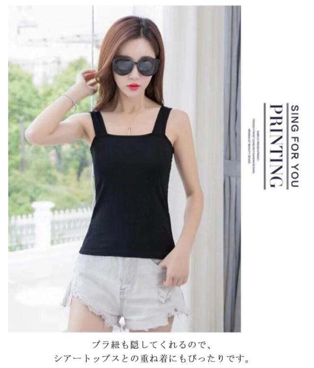 | 肩紐がブラの紐をしっかり隠して、ブラ紐を気にせず可愛く着られるタンクトップです。 胸元の開いたお洋服など、空きのあるお洋服に様々に対応可能なタックトップです。 スクエアネックのすっきりとした胸元は、Vネックのワンピースや、パーカー合わせにも好相性。 ブラ紐も隠してくれるので、シアートップスとの重ね着にもぴったりです。 | |