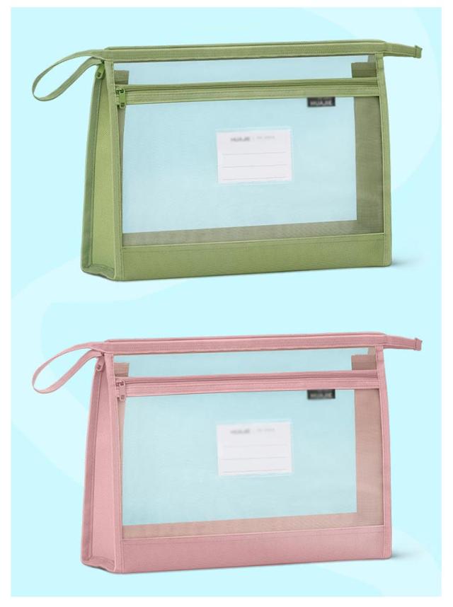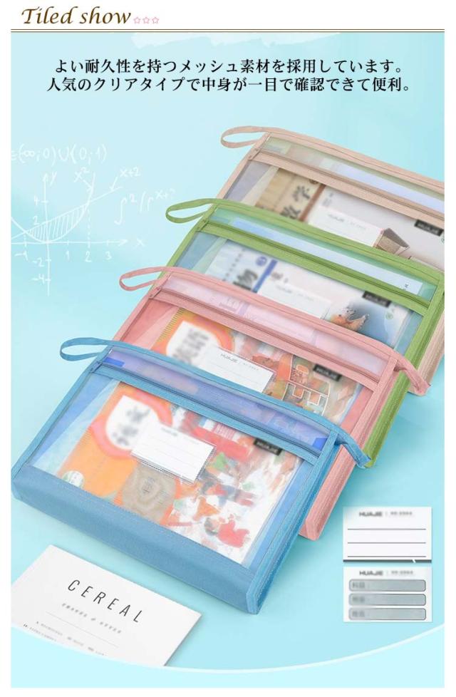| 高効率的に書類とオフィス用品を整理するファイル袋セットアップ よい耐久性を持つメッシュ素材を採用しています。人気のクリアタイプで中身が一目で確認できて便利。 重要な文書、文房具、化粧品、請求書、領収書、およびその他のアイテムを保管するのに適しています。 両重ファスナーで書類袋は二層からなっています。同じ大きさの単一層のファイル袋より、もっと多くのものを入れて、スペースを節約できます。 薄型タイプなので長時間持って歩くても疲れません。外出旅行、出張の時カバンの中にも簡単に収納できます。 | |