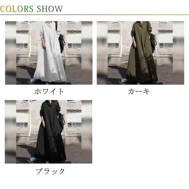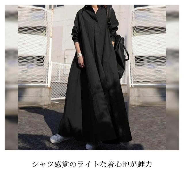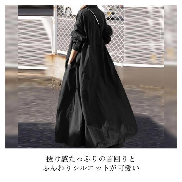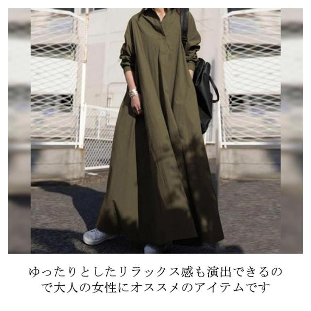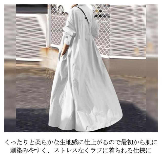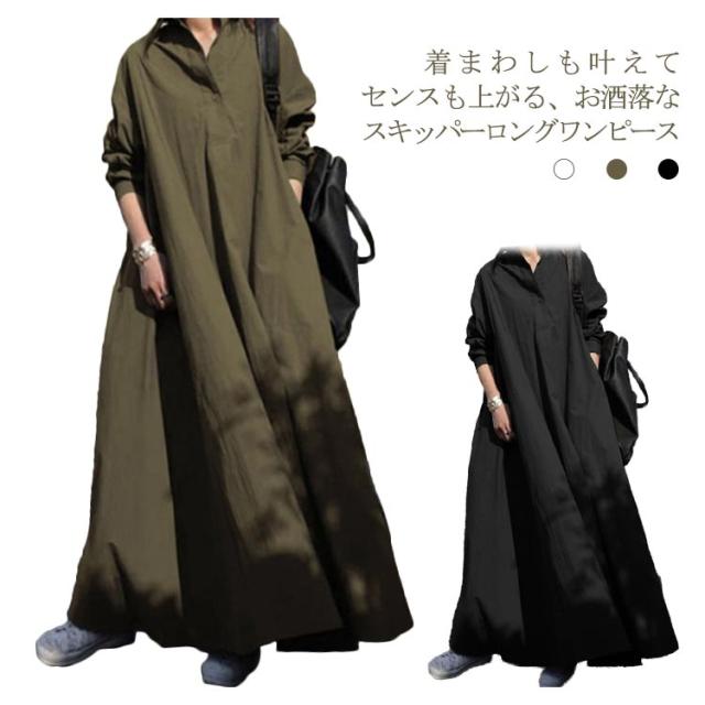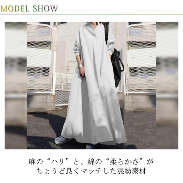 ロングシャツワンピース スキッパーワンピース 長袖 ロングシャツ ワンピース シャツワンピ 綿麻 ドロップショルダー ロング丈 マキシ丈 長袖 体型カバー フレアワンピース シャツワンピース 無地 ゆったり シンプル 着痩せ 送料無料