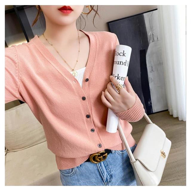 全12色!ニットカーディガン レディース セーター ニット ショート カーディガン ニットカーデ コーディガン トップス アウター 長袖 ショート丈 前開き 春 秋 通勤 通学 普段着 カジュアル ゆったり