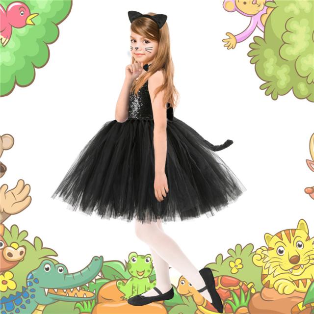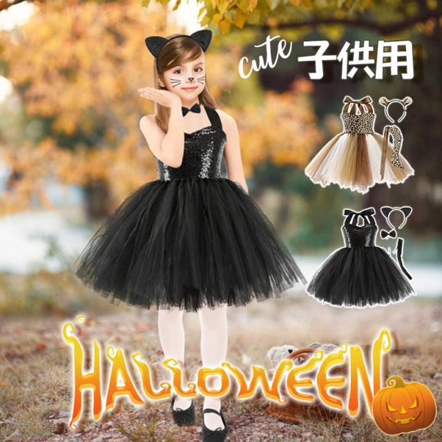 ハロウィン コスプレ 衣装 子供用 3点セット 子ども 黒猫 女の子 キャット 可愛い 動物 衣装 忘年会 ドレスパーティー 子ど