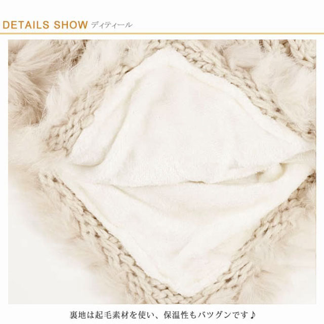 | ポンポンが可愛い耳あて付きニット帽★ 顔周りにあしらったふわふわしたフェイクファーが触り心地よく、小顔効果も期待できます。 裏地は起毛素材を使い、保温性もバツグンです♪ おしゃれでかわいいだけでなく、耳がおおいかぶされるので、防寒にも適しています。 | |
