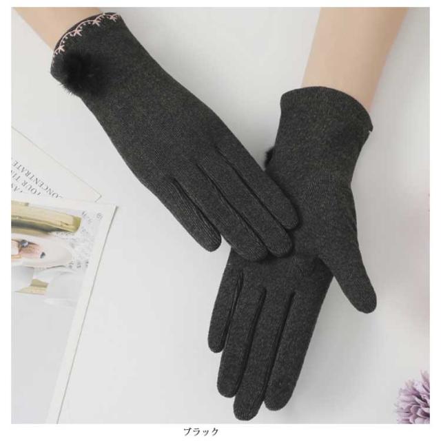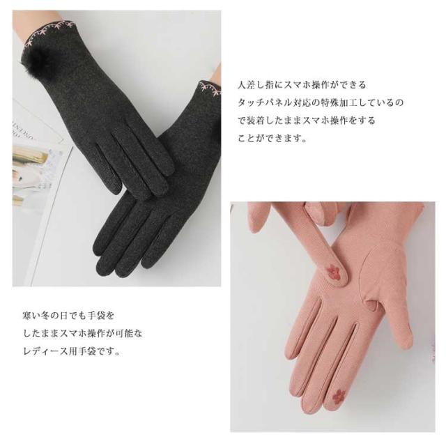 | 【手袋をしたままスマホ操作が可能】 寒い冬の日でも手袋をしたままスマホ操作が可能なレディース用手袋です。人差し指にスマホ操作ができるタッチパネル対応の特殊加工しているので装着したままスマホ操作をすることができます。 【防寒保温】 内側はスエード生地で温かくしっかり保温してくれます。また柔らかい手触りなので、多くの女性に好評いただいています。生地も薄めなので、冬の通勤、通学やショッピングやデートにもお使いいただけます。 | |