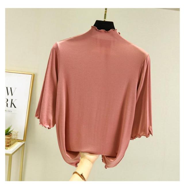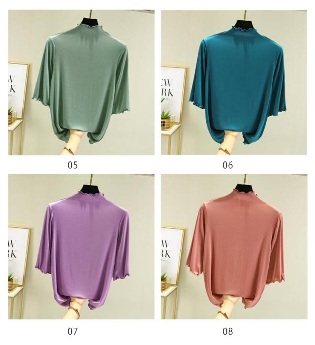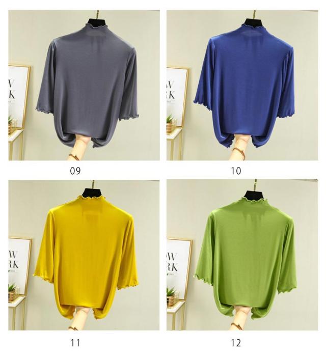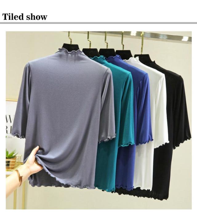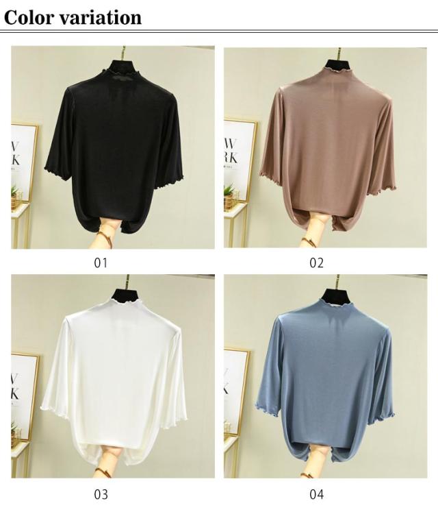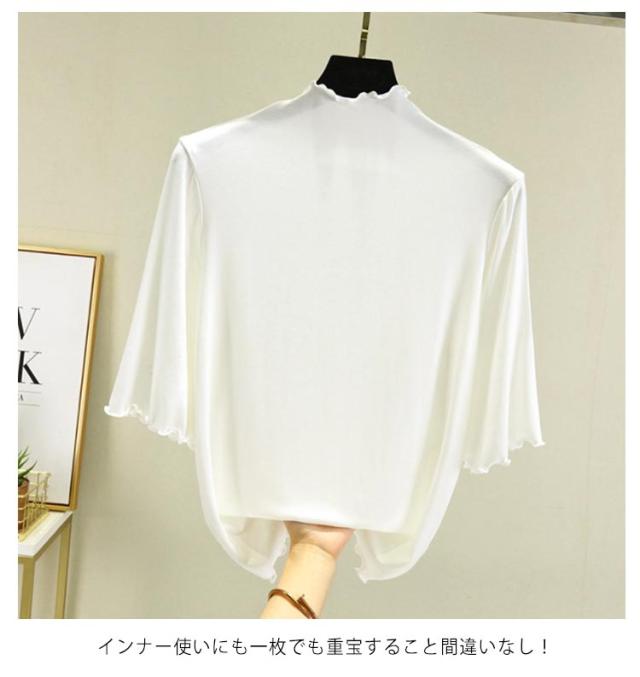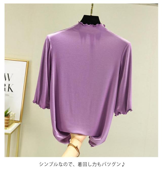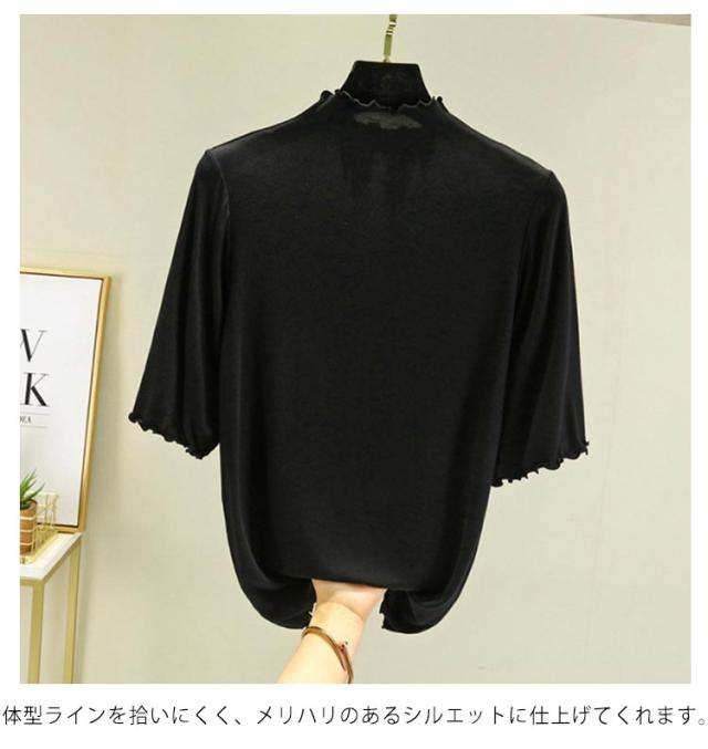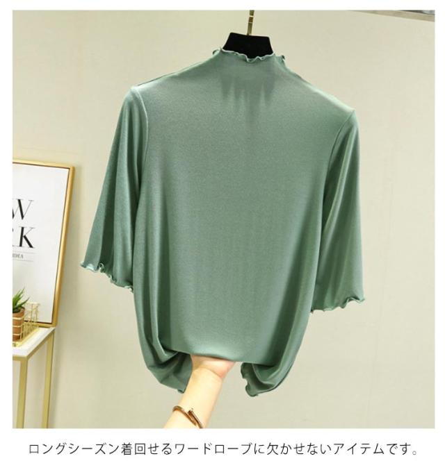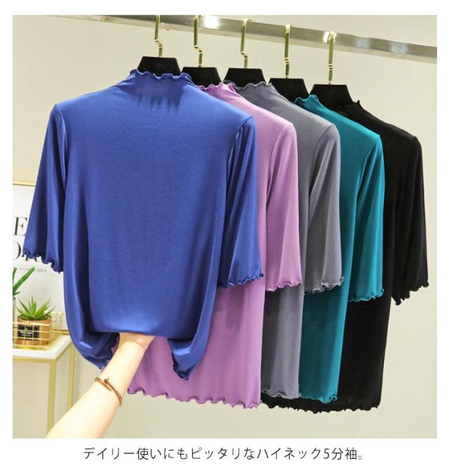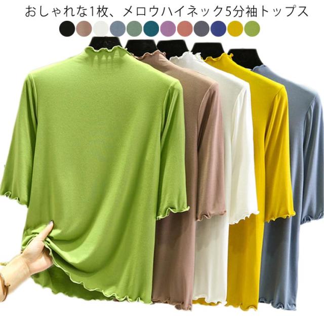 伸縮性 インナー レディース 半袖 トップス 5分袖 Tシャツ 全12色×4サイズ メロウネック ハイネック タートルネック 五分袖 無地 カットソー シンプル カジュアル 大きいサイズ ボトルネック ゆったり 白