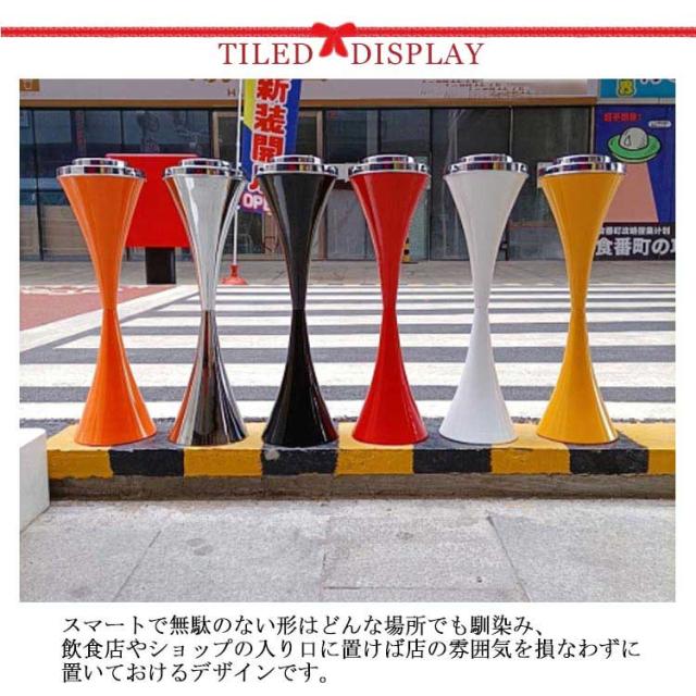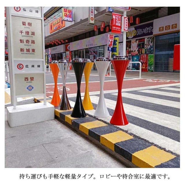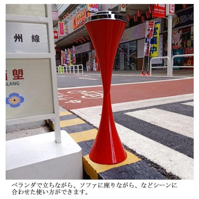 | 6色のバリエーションからお選びいただけ、さまざまな場所でつかえるスタンド灰皿。 スマートで無駄のない形はどんな場所でも馴染み、飲食店やショップの入り口に置けば店の雰囲気を損なわずに置いておけるデザインです。 持ち運びも手軽な軽量タイプ。ロビーや待合室に最適です。 風を受けにくいよう形状に丸みを持たせ、重心は土台へ集中し安定する設計にしております。 ベランダで立ちながら、ソファに座りながら、などシーンに合わせた使い方ができます。 | |