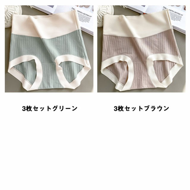 パンティ レディース 送料無料 リブショーツ 深め 3枚セット ハイウエストショーツ 女性 下着 深履き シームレス すっぽり 股上深め コットン コットン シンプル 無地 綿 パンツ インナー アンダーウェア ストレッチ ショーツ