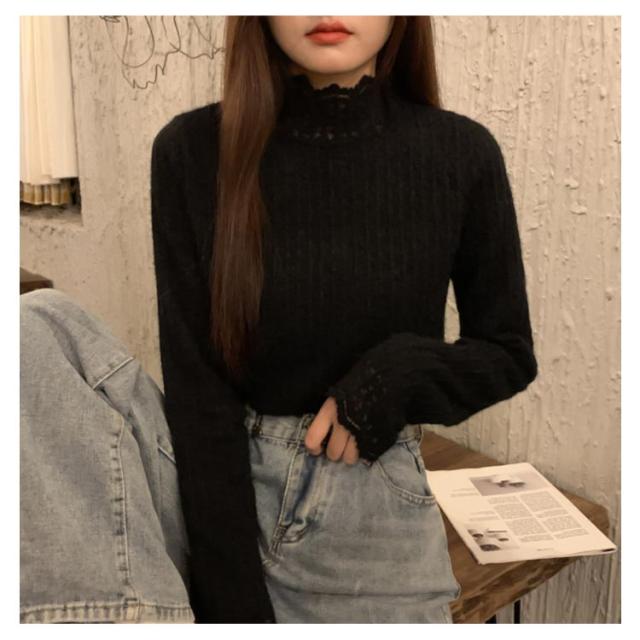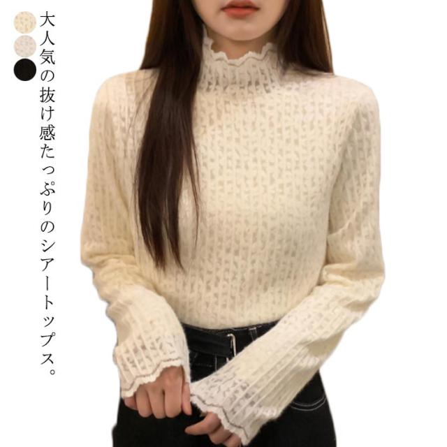 レース トップス 長袖 レディース ブラウス ハイネック レーストップス レイヤード レースインナー 長袖 総レース 重ね着 きれいめ 花柄