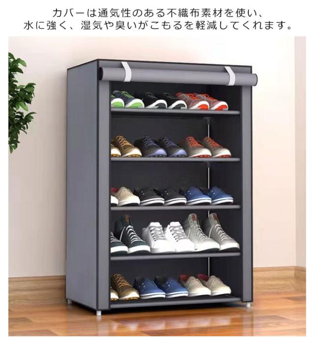 | 選べる5サイズ!コンパクトシューズラック 省スペースながらも、高さを利用してたっぷり容量となっております。 ご家族の靴やオフシーズンの靴も箱ごとまとめて収納できます。 カバーは通気性のある不織布素材を使い、水に強く、湿気や臭いがこもるを軽減してくれます。 巻き上げてカバーを固定できて、ゆっくり靴を選びたい時やラックの中を掃除する時にも便利です。 シューズラックだけではなく、収納棚としてもOK!玄関や子供部屋、寝室など、見た目以上にたっぷり収納していただけるお手頃な組み立て式ラックです。 | |