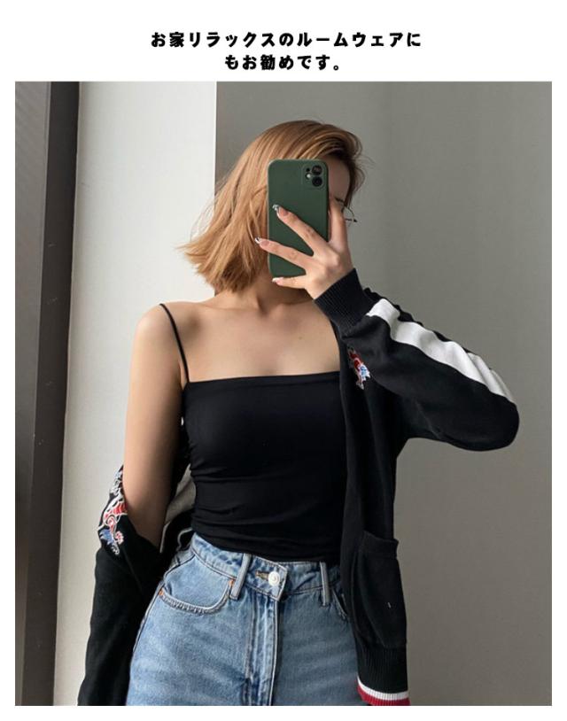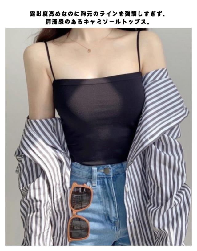 | 一日を快適にお過ごしいただけるキャミソールです ジャケットやシャツのインナー着としてはもちろん、カップ付きだからこれ一枚で着てもOKなトップスです。 通気性に優れているので蒸し暑くなく、固定バストカップでズレる心配なし、ノンワイヤーでストレスゼロの着心地。 露出度高めなのに胸元のラインを強調しすぎず、清潔感のあるキャミソールトップス。 短丈デザインなのでハイウエストのボトムスとの相性が良い カップ付きだからこれ1枚で着られる! お家リラックスのルームウェアにもお勧めです。 | |