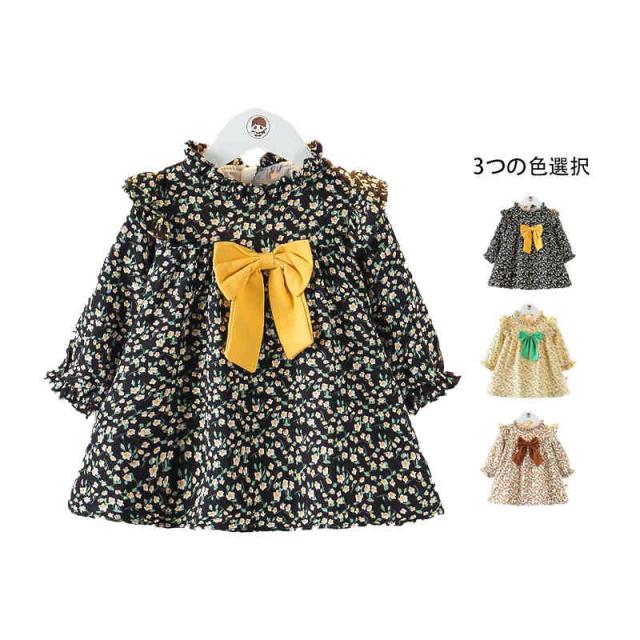 丸襟 花柄ワンピース キッズ ロングワンピース 花柄 おしゃれワンピース フリルワンピース リボン付き 子供ワンピース フリル フリルワンピース シンプル カジュアル おしゃれ 子供服 リボンワンピース
