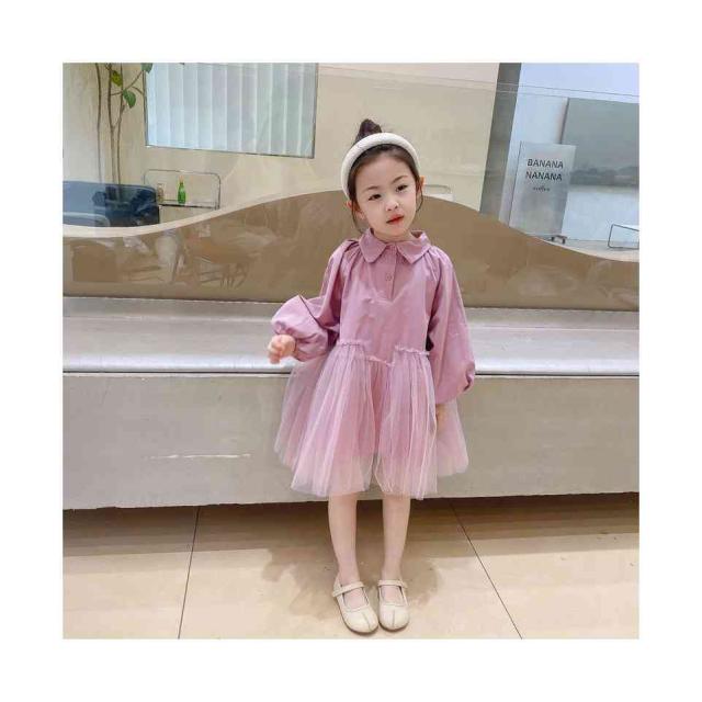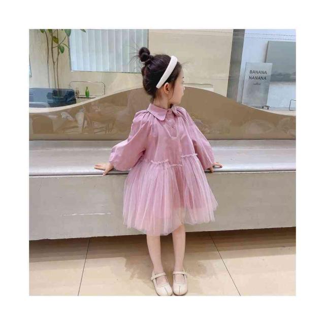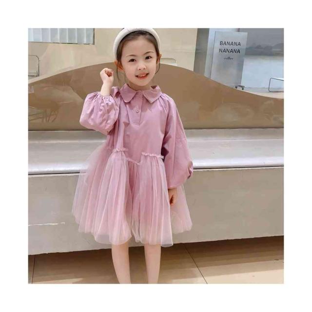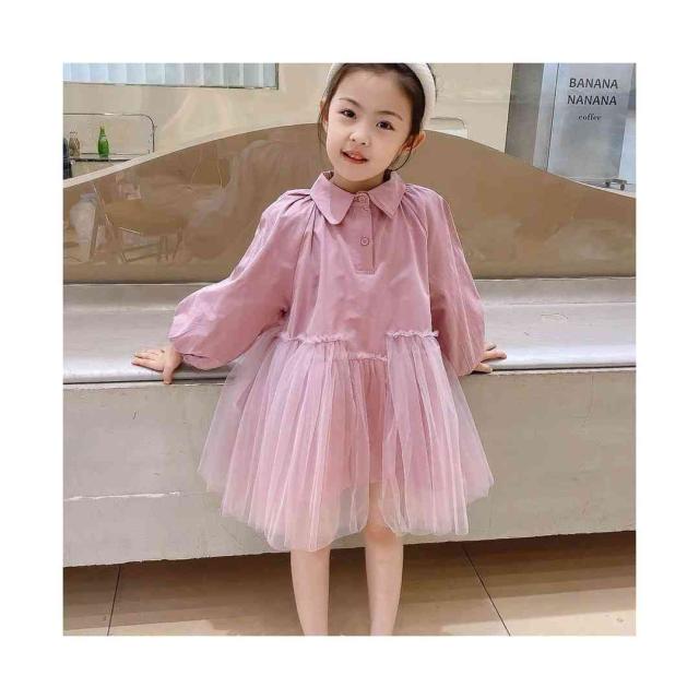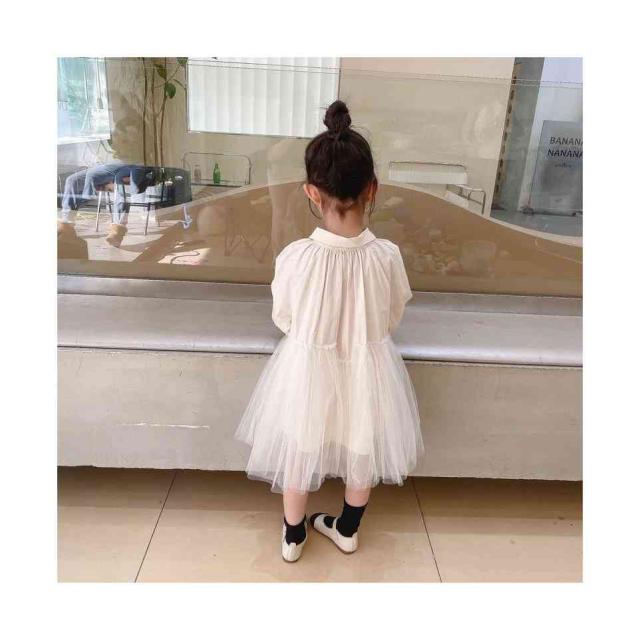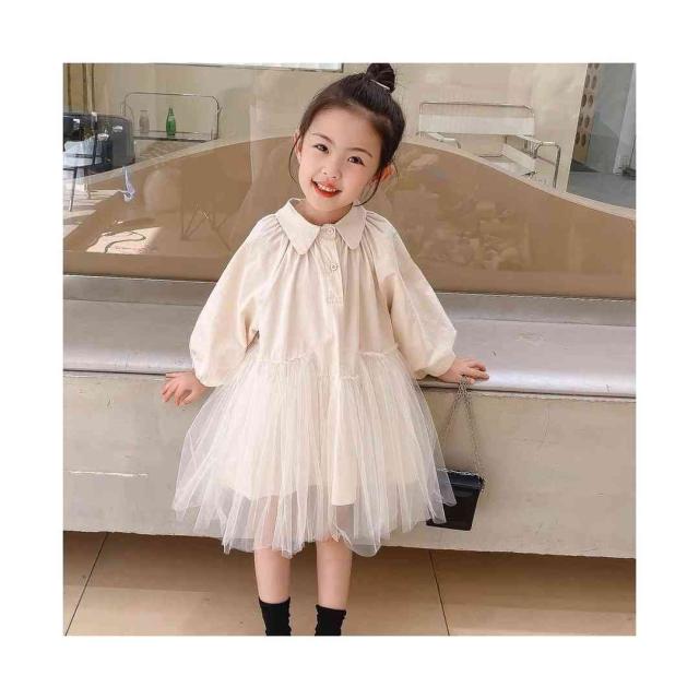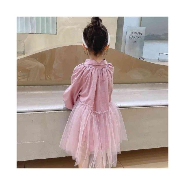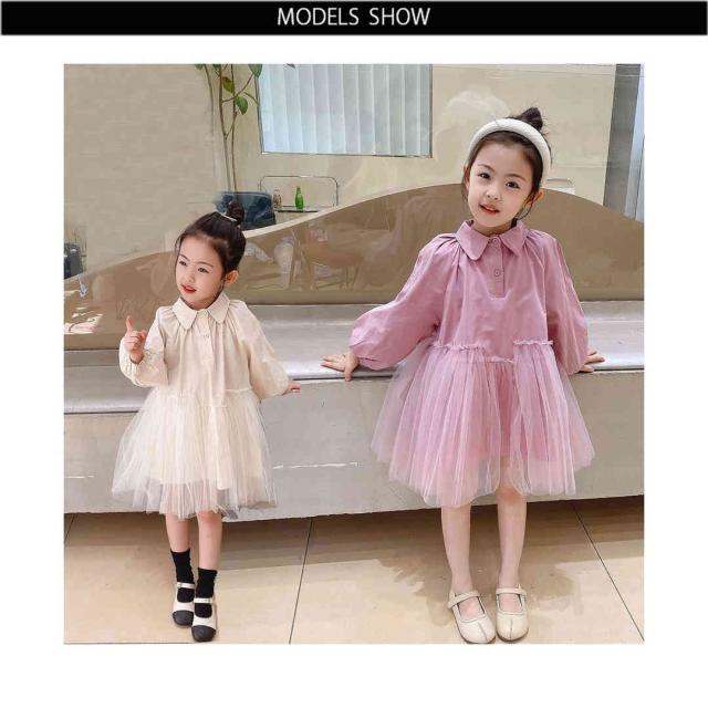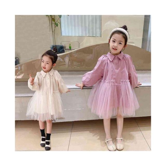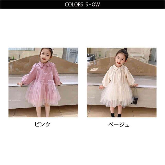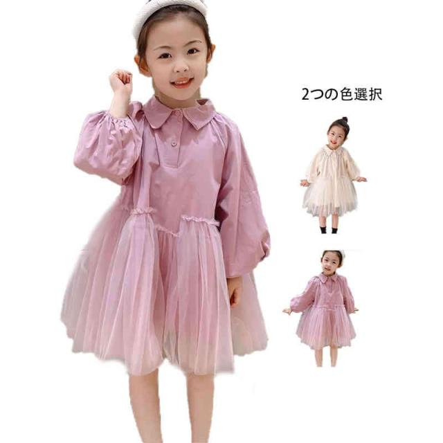 インナーワンピース 春秋 シャツワンピース チュールワンピース キッズ 女の子 おしゃれワンピース 子供服 折襟 シャツワンピース 子供ワンピース 長袖ワンピース 送料無料 長袖